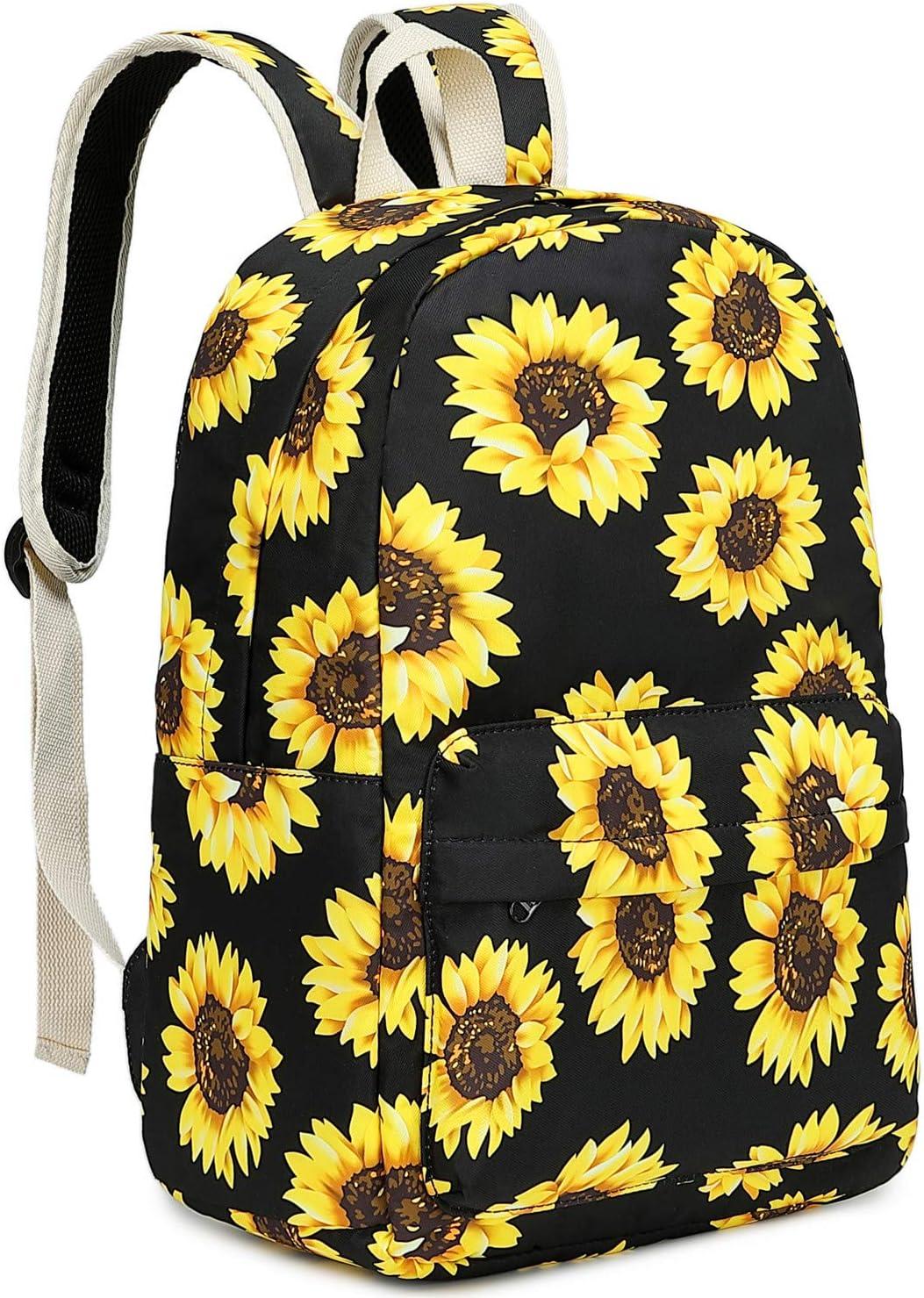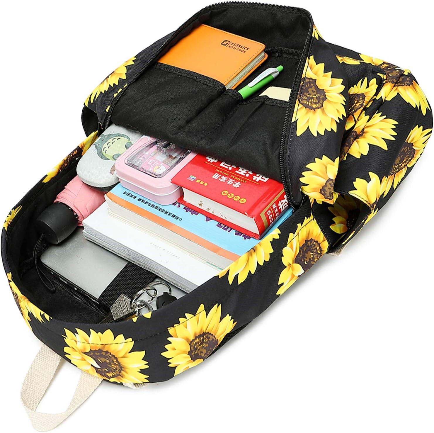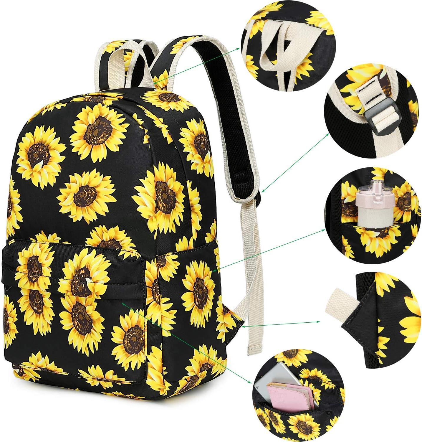 Backpack for Teen Girls Womens School Laptop Bookbag Travel Rucksack Sunflower Daypacks (Sunflower Black) One_Size