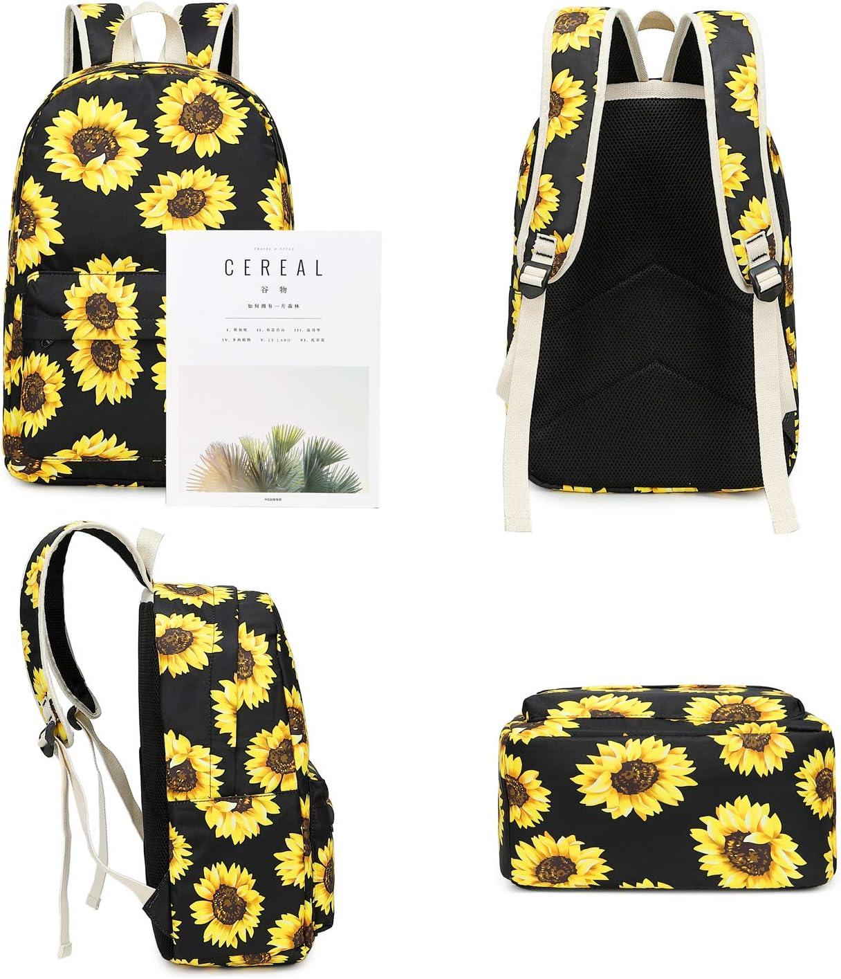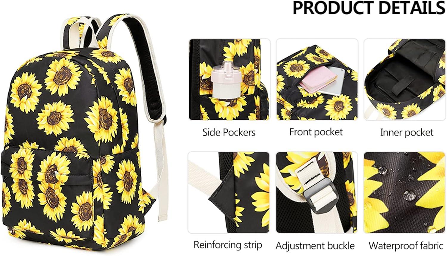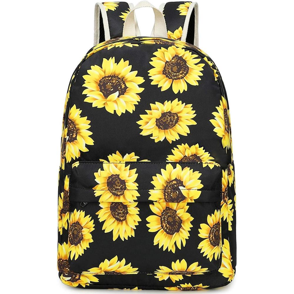 Backpack for Teen Girls Womens School Laptop Bookbag Travel Rucksack Sunflower Daypacks (Sunflower Black) One_Size