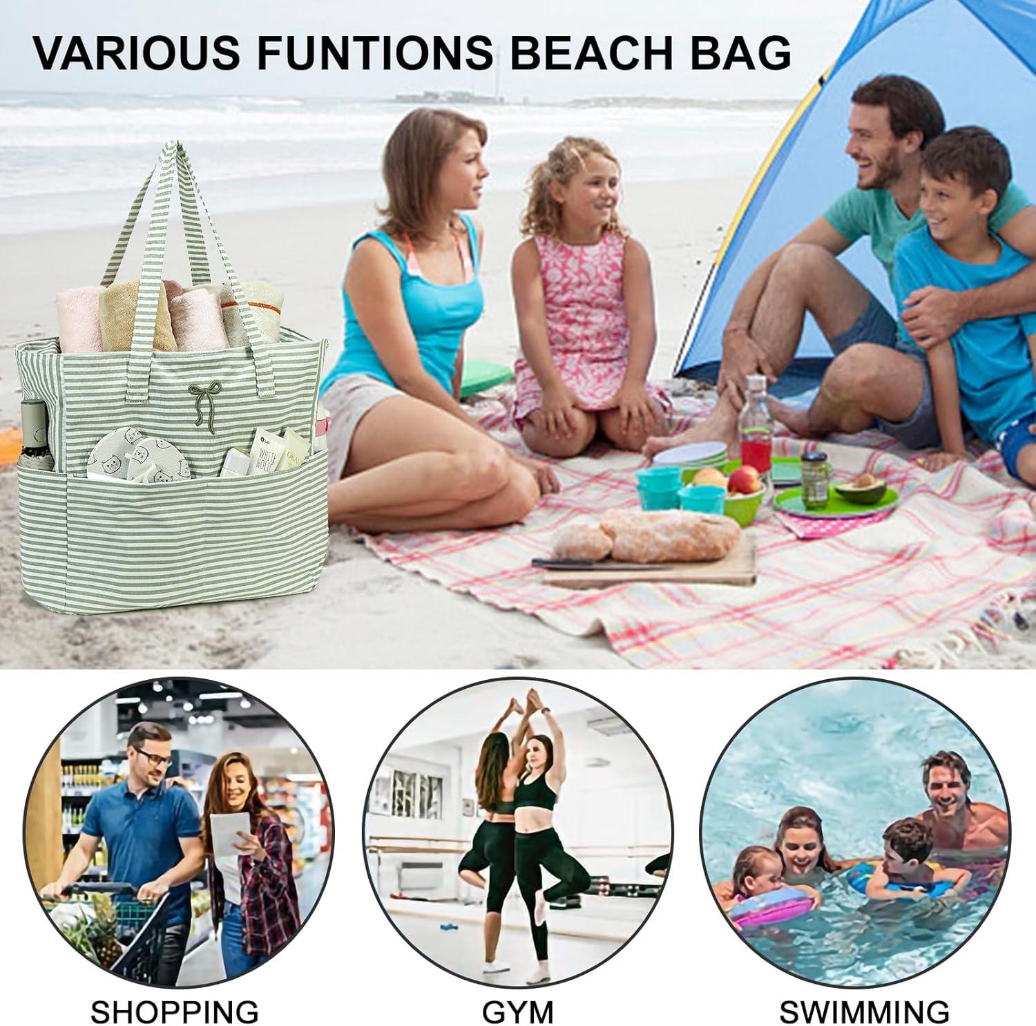 imageBeach Pool Bags Tote for Women Ladies Large Gym Tote Carry On Bag With Wet Compartment for Weekender Travel WaterproofGreen Striped Bow
