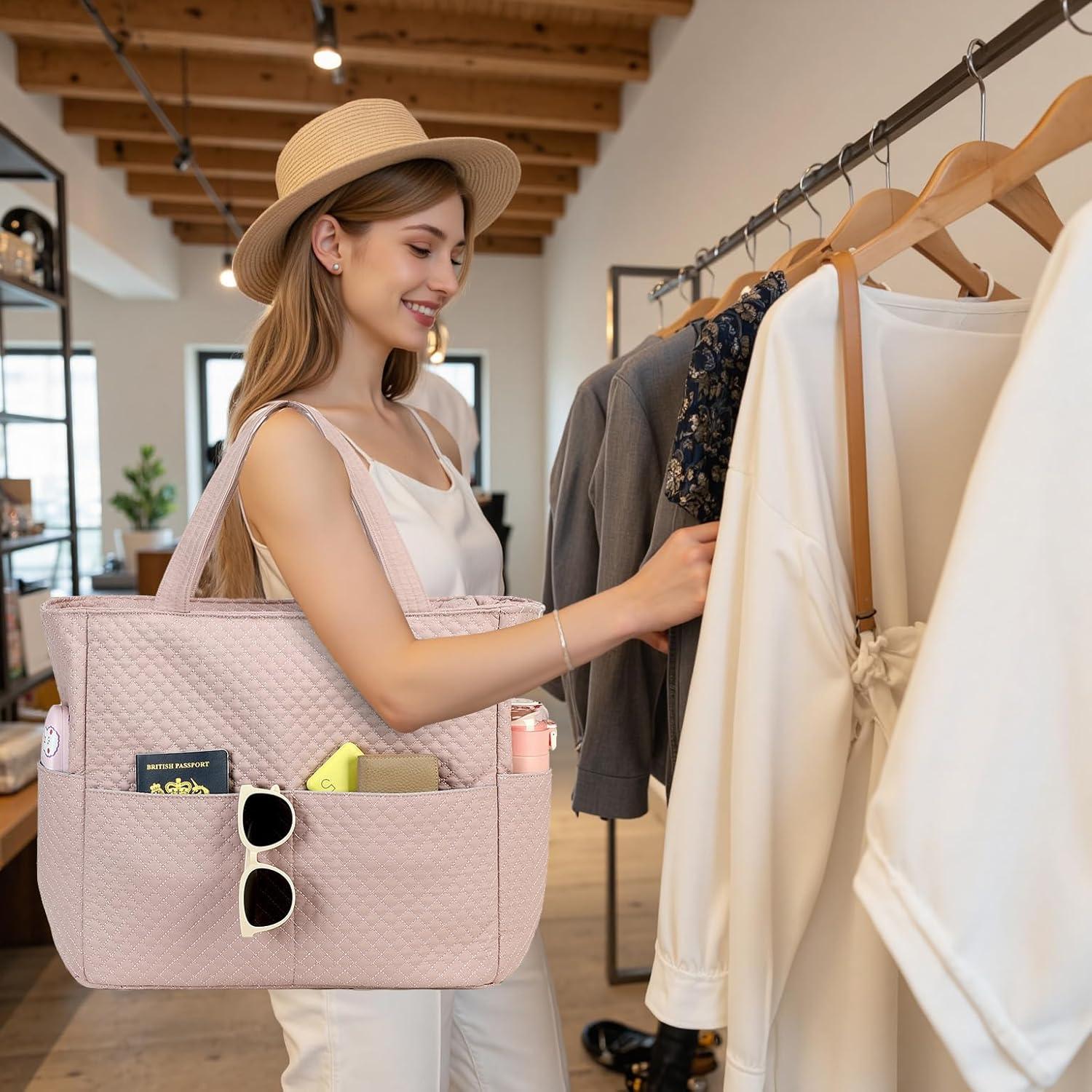 Be the first to review “Beach Pool Bags Tote for Women Ladies Large Gym Tote Carry On Bag With Wet Compartment for Weekender Travel Waterproof(Quilted Pink Small Squaresice Cubes)”