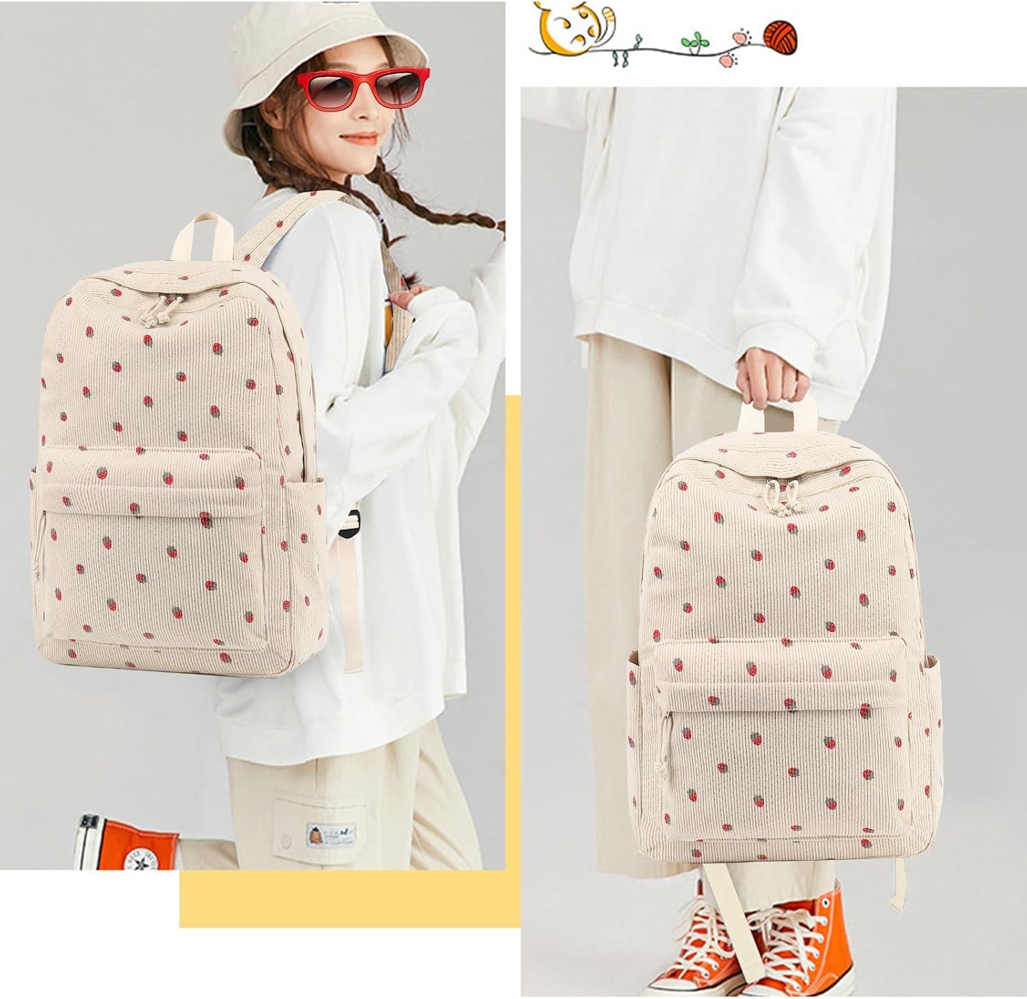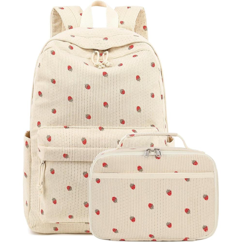 imageBluboon Backpack for Girls Kids Preschool Backpack with Lunch Box Kindergarten Bookbag Toddler School Bags SetCorduroy Strawberries