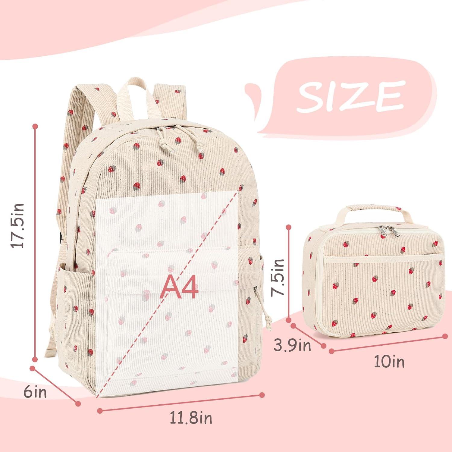 Bluboon Backpack for Girls Kids Preschool Backpack with Lunch Box Kindergarten Bookbag Toddler School Bags Set(Corduroy Strawberries)