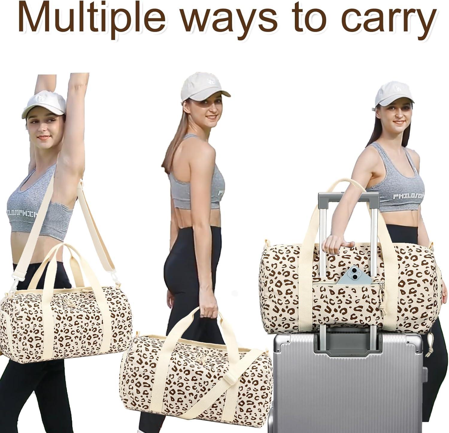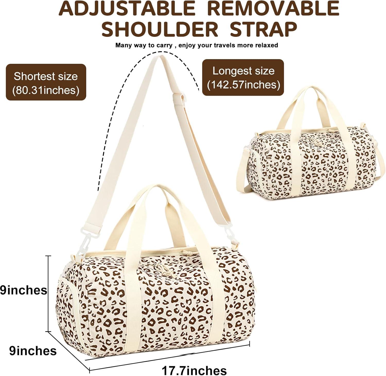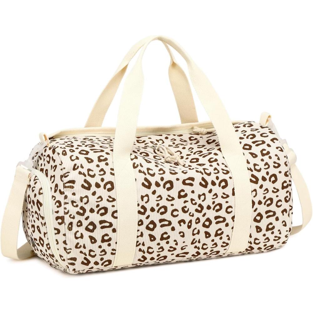 imageBLUBOON Duffle Bag Girls Kids Cute Gym Bag with Shoes Compartment ampamp Wet Separation Waterproof Sports Overnight Travel BagCorduroy Drown Leopard Print
