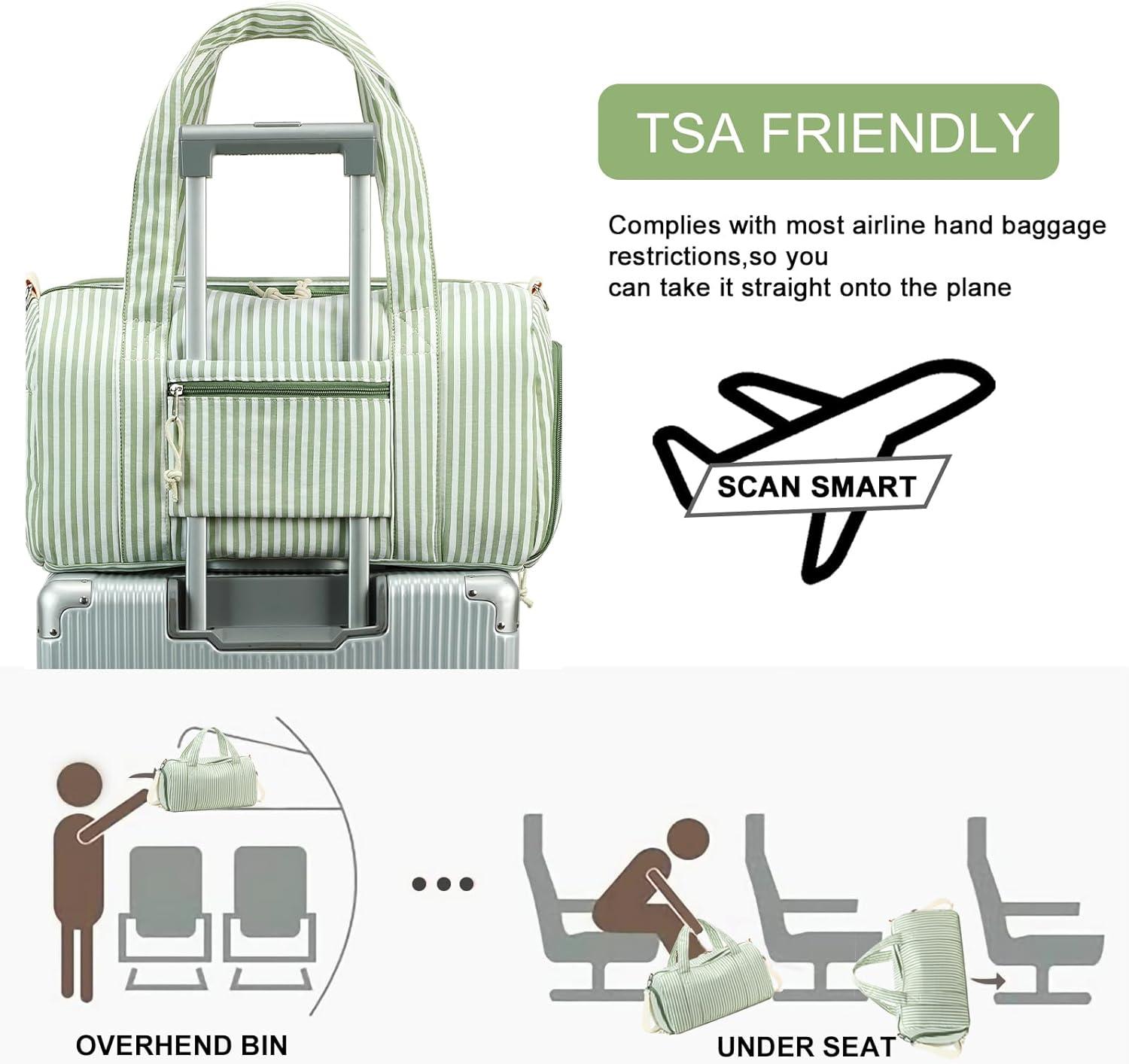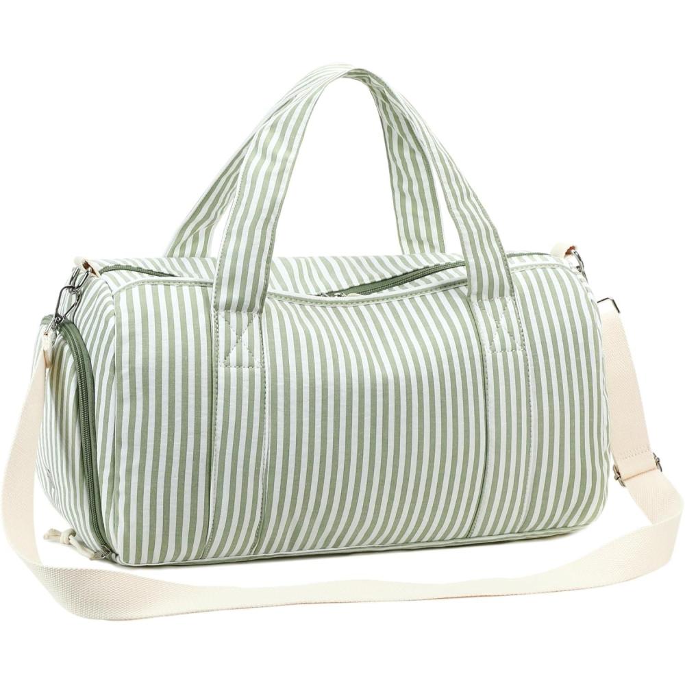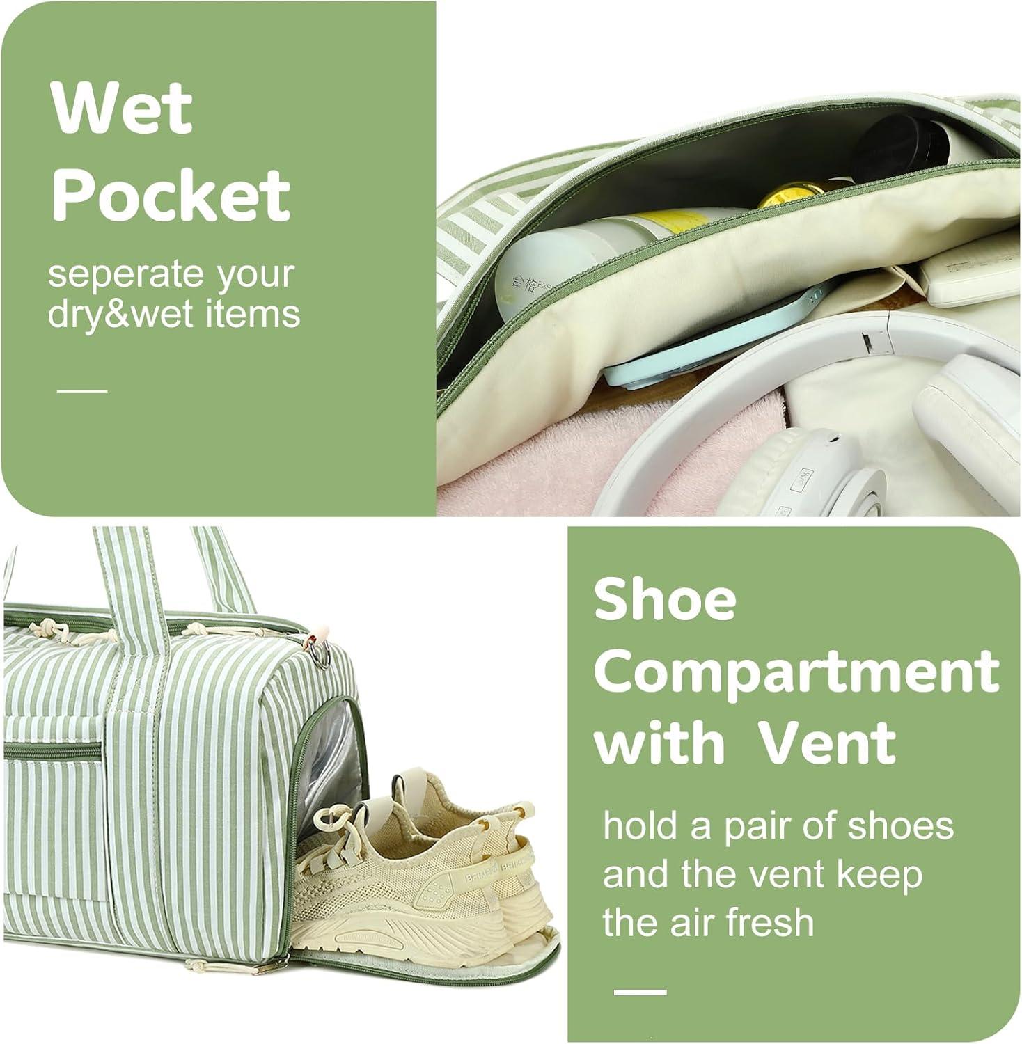 imageBLUBOON Duffle Bag Girls Kids Cute Gym Bag with Shoes Compartment ampamp Wet Separation Waterproof Sports Overnight Travel BagGreen White Stripes