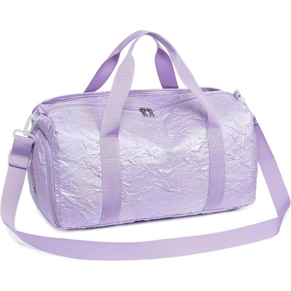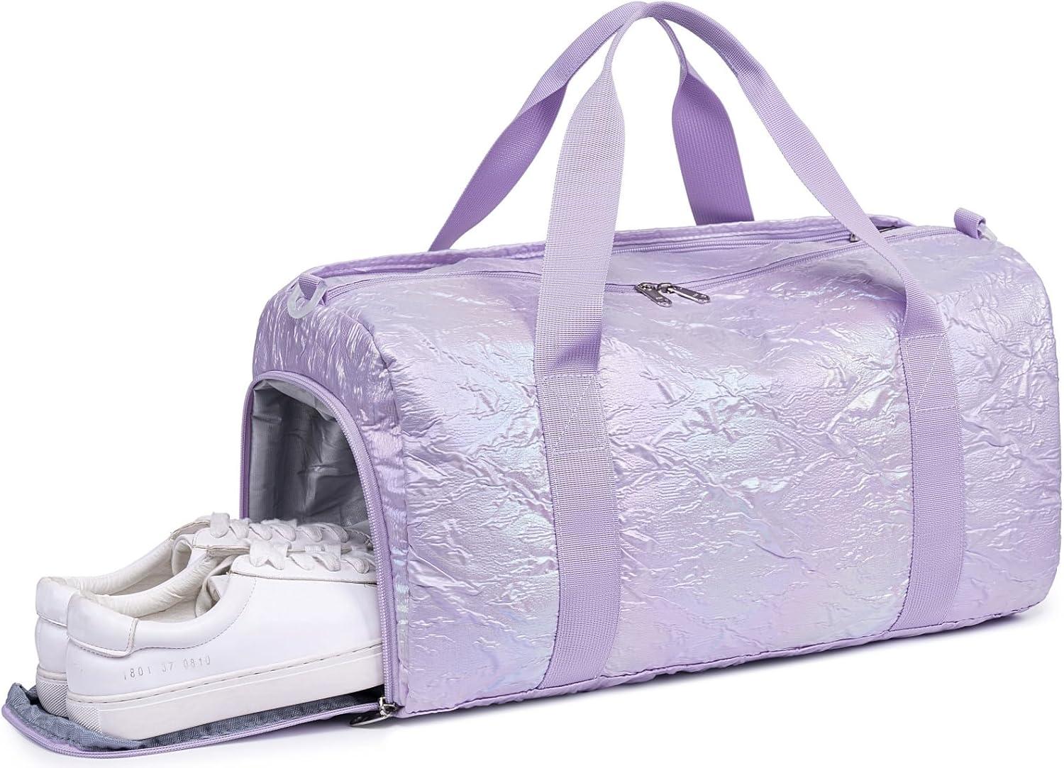 BLUBOON Duffle Bag Girls Kids Cute Gym Bag with Shoes Compartment & Wet Separation Waterproof Sports Overnight Travel Bag(Metallic purple)