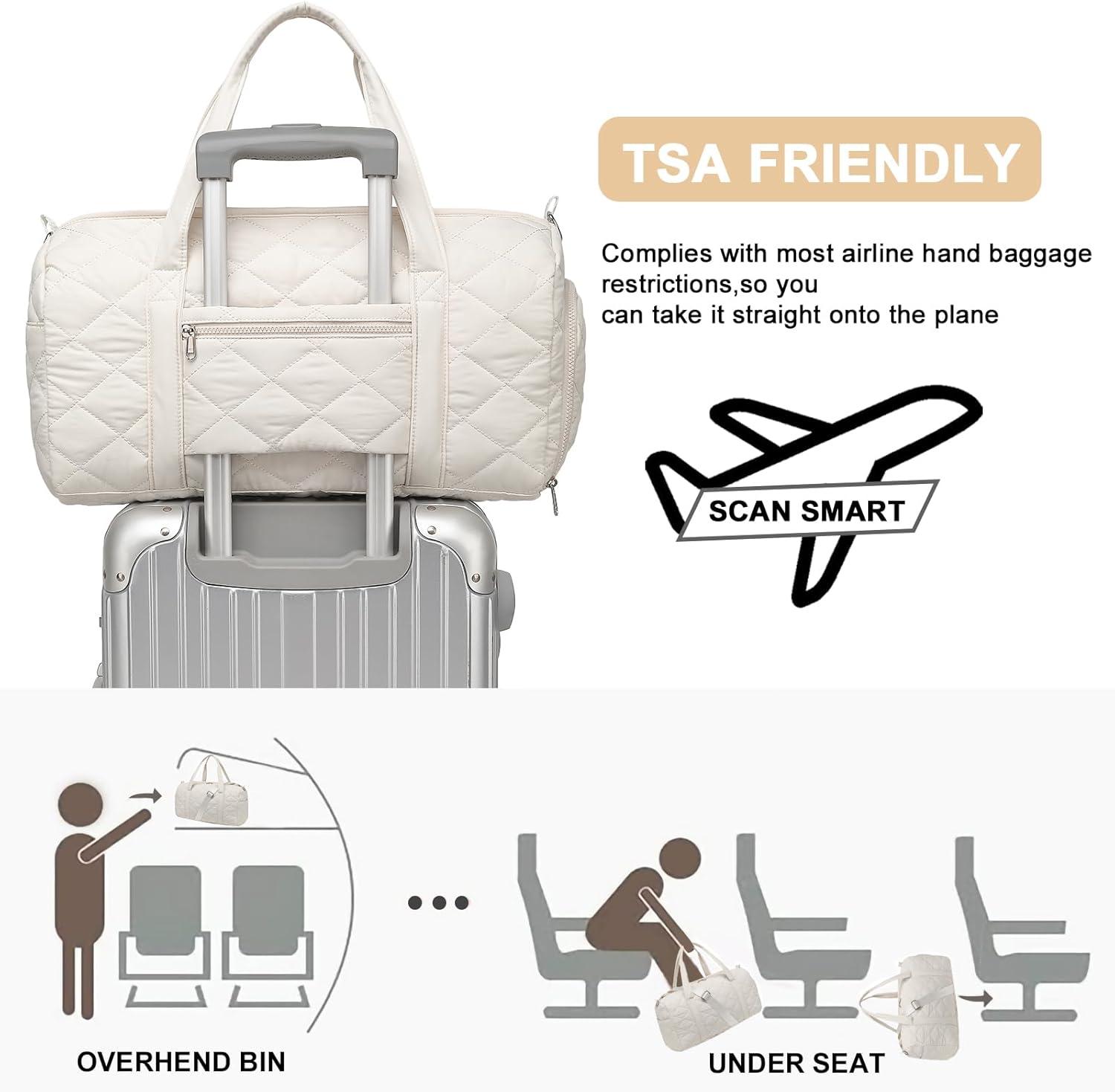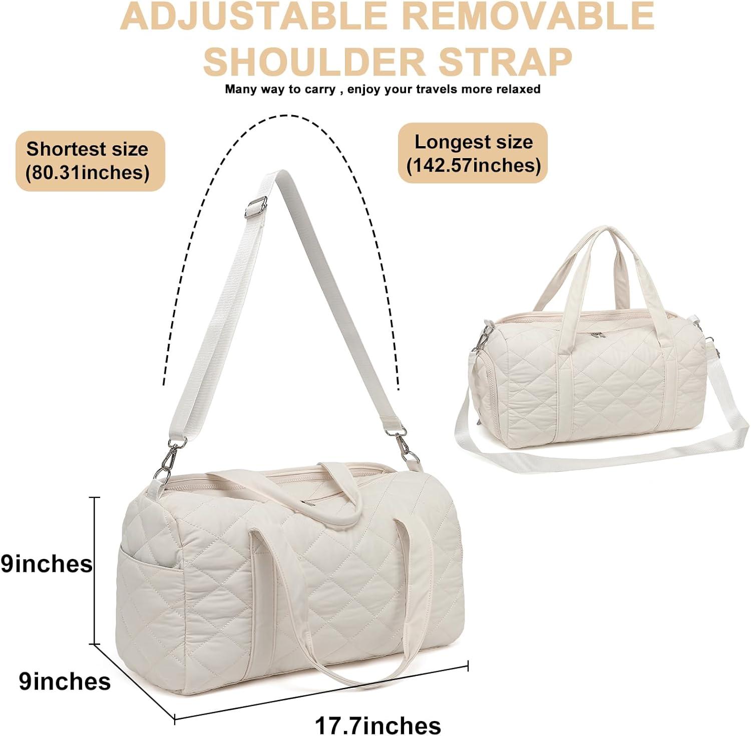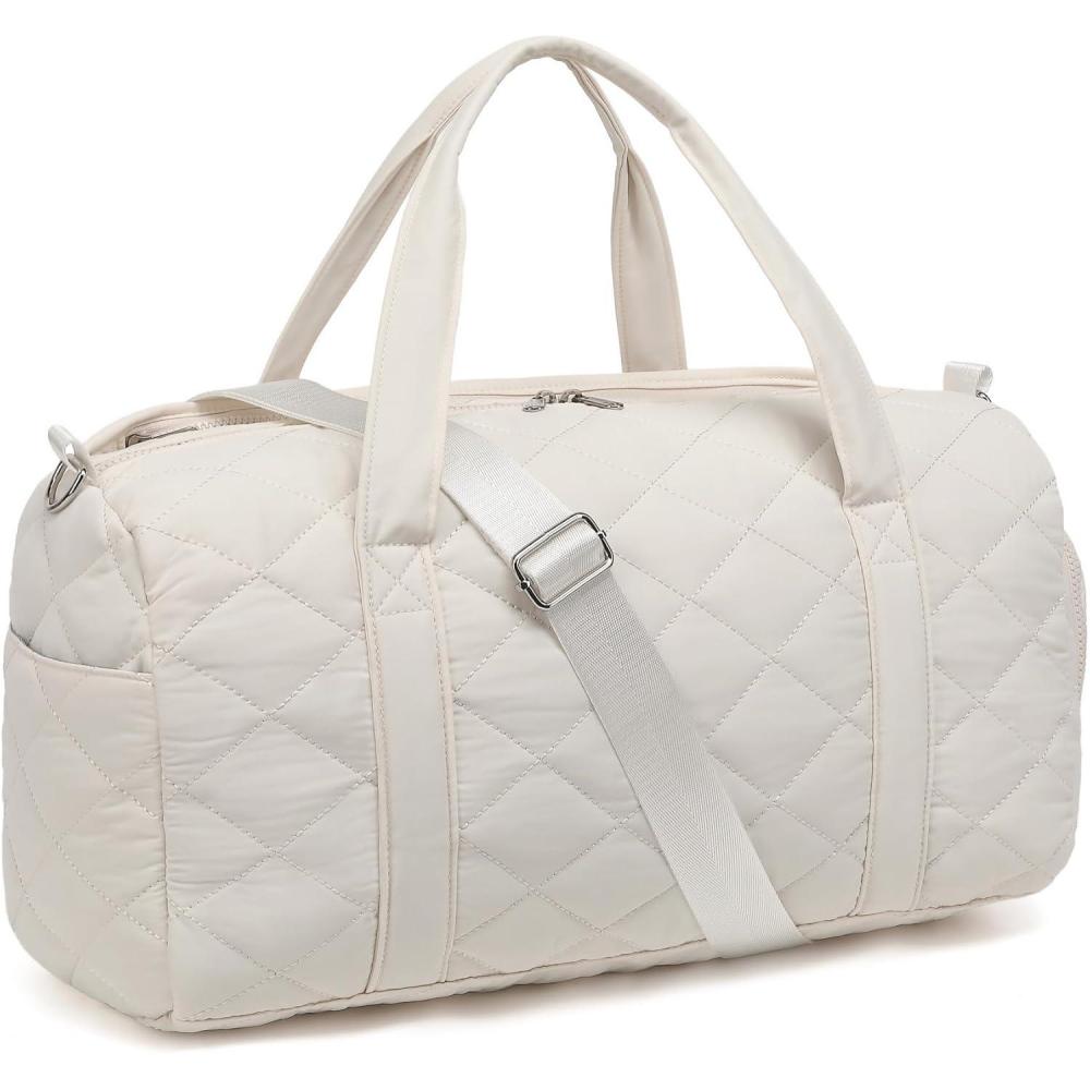 BLUBOON Duffle Bag Girls Kids Cute Gym Bag with Shoes Compartment & Wet Separation Waterproof Sports Overnight Travel Bag(Quilted Beige Diamond Shaped Fabric)