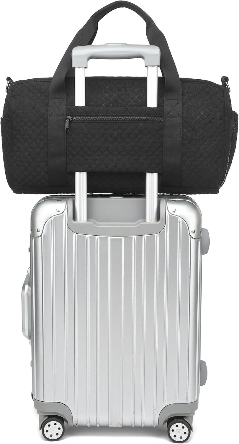 BLUBOON Duffle Bag Girls Kids Cute Gym Bag with Shoes Compartment & Wet Separation Waterproof Sports Overnight Travel Bag(Quilted black Small Squares)