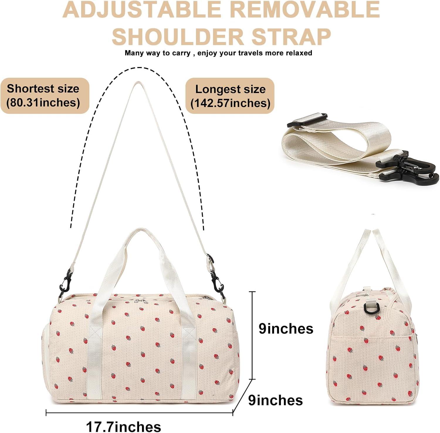 imageBLUBOON Duffle Bag Girls Kids Cute Gym Bag with Shoes Compartment ampamp Wet Separation Waterproof Sports Overnight Travel BagStrawberry corduroy brown white
