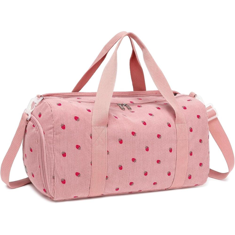imageBLUBOON Duffle Bag Girls Kids Cute Gym Bag with Shoes Compartment ampamp Wet Separation Waterproof Sports Overnight Travel BagStrawberry Corduroy Pink