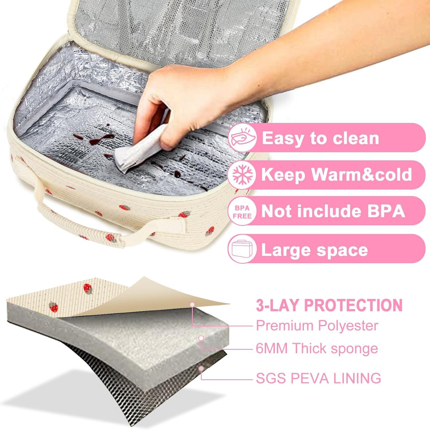 Bluboon Insulated Lunch Bag for Girls & Boys, Corduroy School Lunch Box with Cooler & Organizer Compartments, Leak-Proof Lunch Tote for School, Travel (Corduroy Strawberries Beige)(Corduroy beige strawberry)