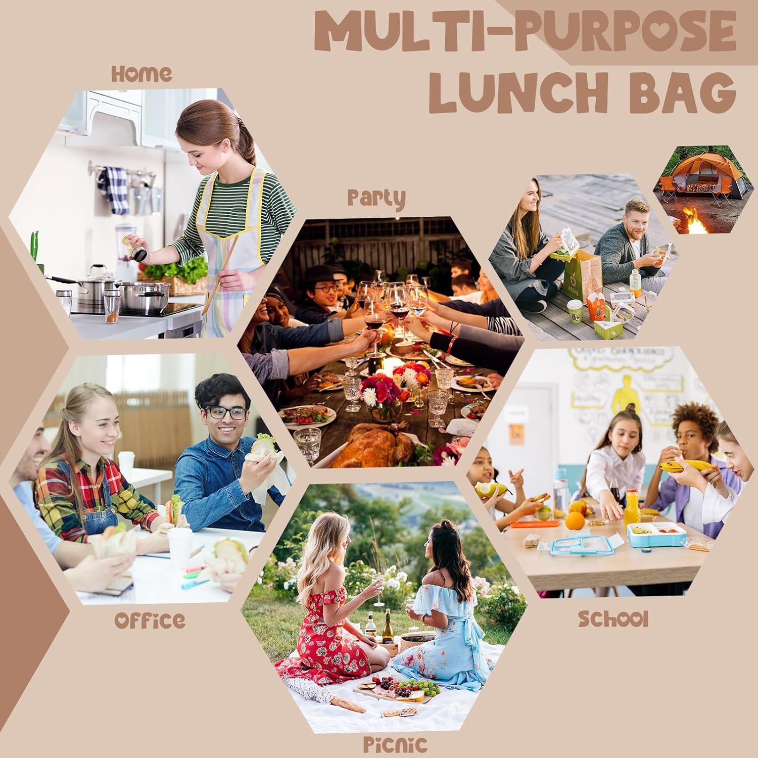 The lunch cooler bag is made of sturdy water resistant polyester, and aluminum insulation lining which is easy to clean and BPA free. It can be used as lunch bag, picnic bag or sundry bag.