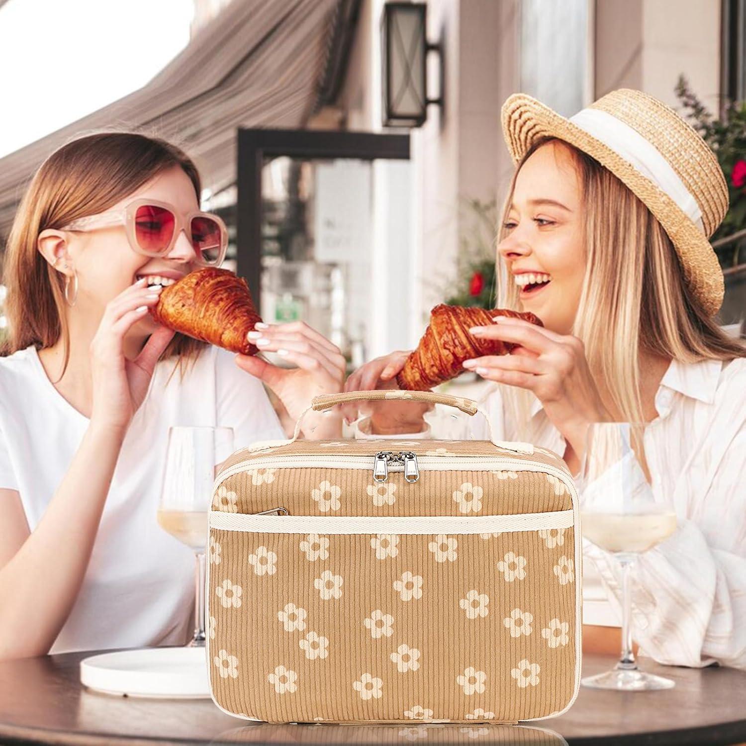 Bluboon Kids Girls Lunch Bag Insulated Lunch Box for school Corduroy Lunch Cooler Organizer School Kids Lunch Tote(Beige Floral 95)