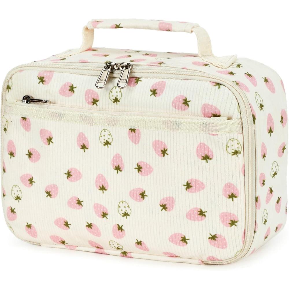 The lunch cooler bag is made of sturdy water resistant corduroy material, and aluminum insulation lining which is easy to clean and BPA free. It can be used as lunch bag, picnic bag or sundry bag.