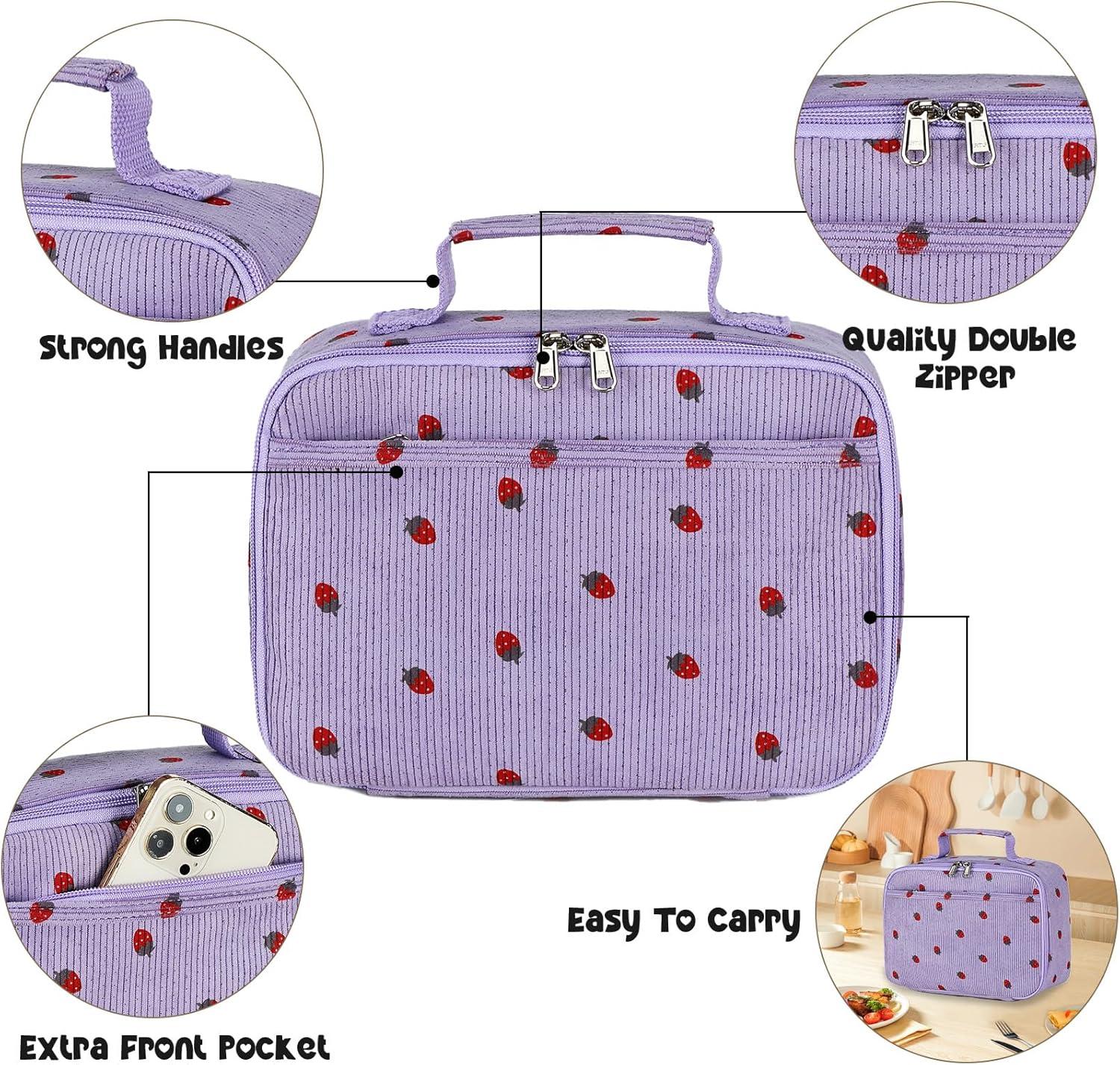 Score big savings on Bluboon Kids Girls Lunch Bag Insulated Lunch Box for school Corduroy Lunch Cooler Organizer School Kids Lunch Tote(Corduroy Purple Strawberry) during our back-to-school sale. Limited quantities available.