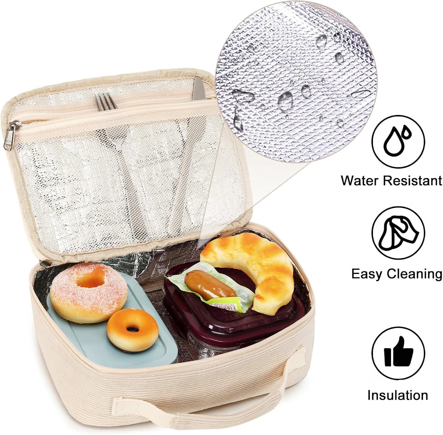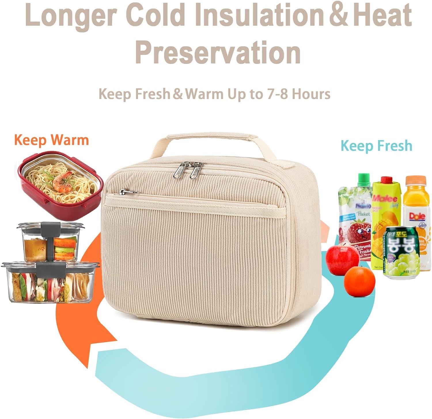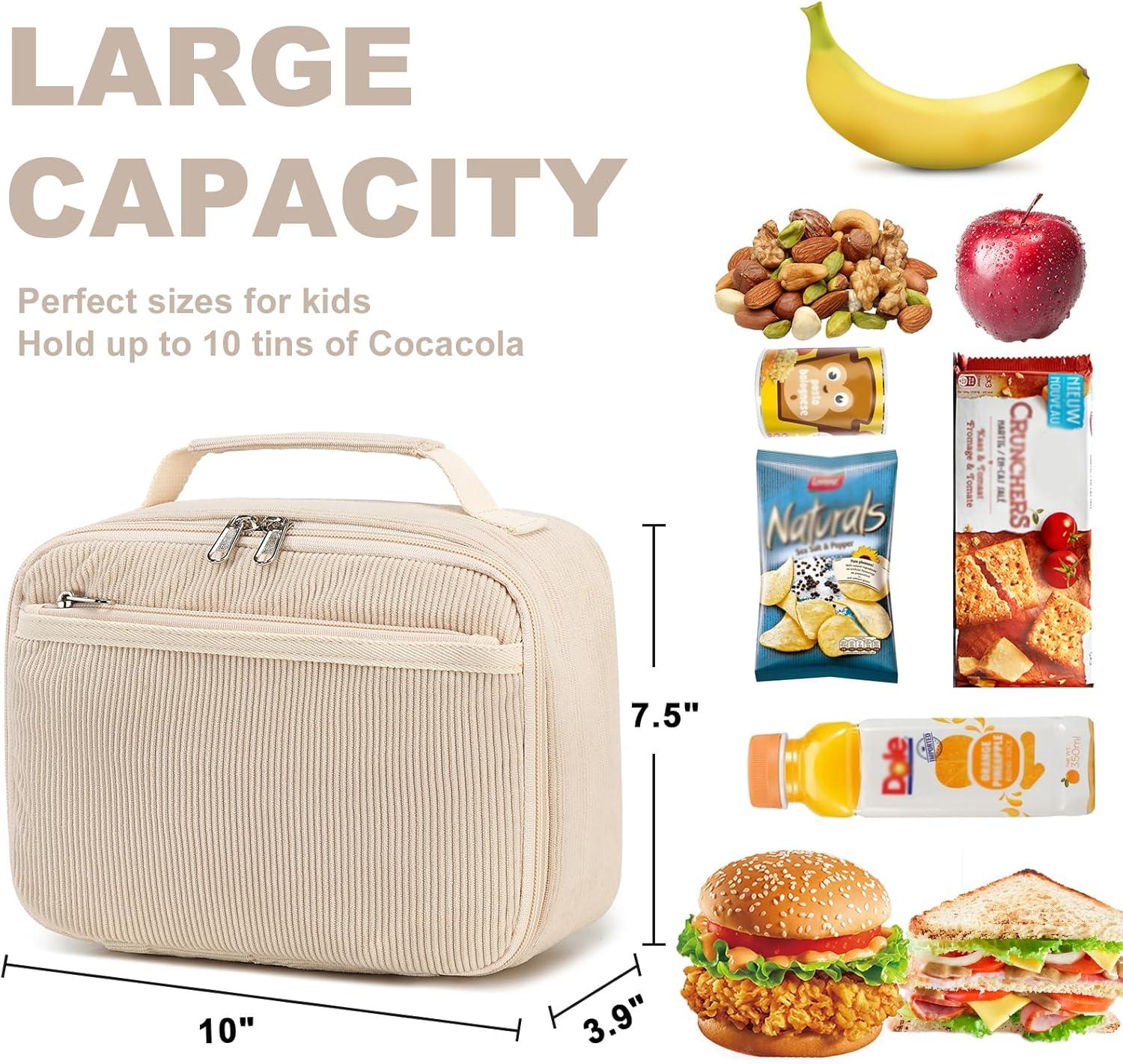 Bluboon Kids Girls Lunch Bag Insulated Lunch Box for school Corduroy Lunch Cooler Organizer School Kids Lunch Tote(Corduroy-white)