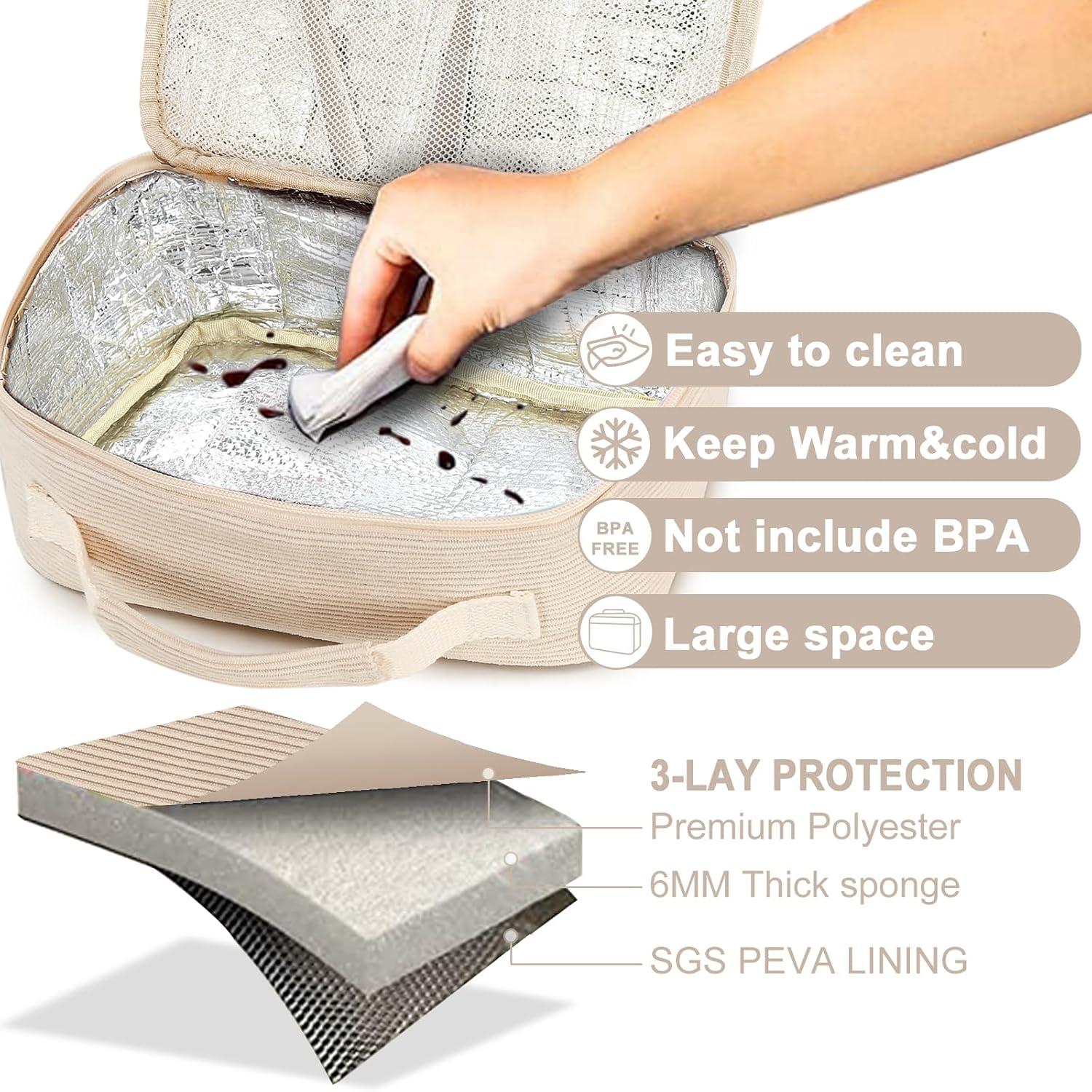The lunch cooler bag is made of sturdy water resistant corduroy material, and aluminum insulation lining which is easy to clean and BPA free. It can be used as lunch bag, picnic bag or sundry bag.