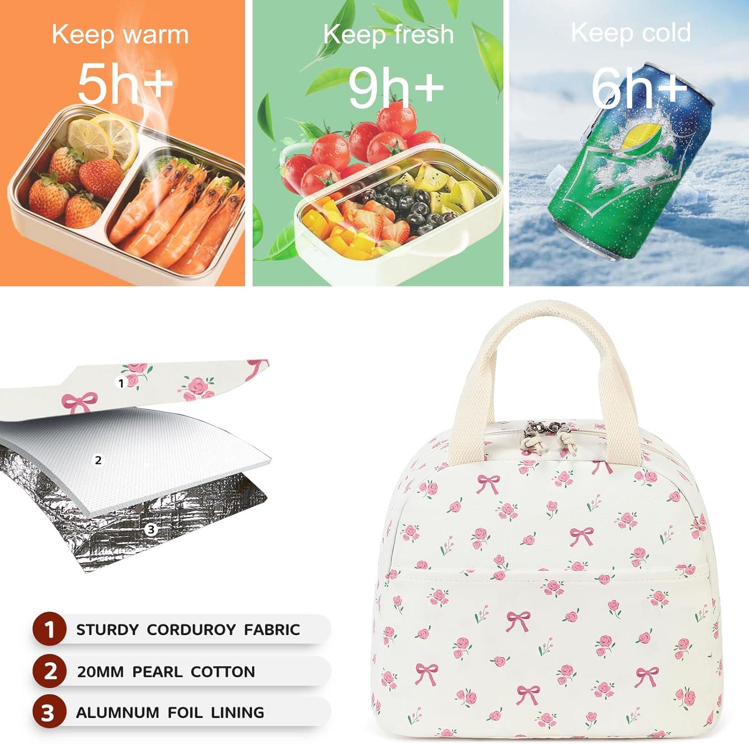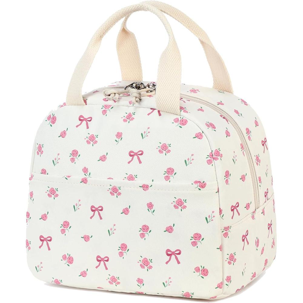 Bluboon Lunch Box for Women Cute Lunch Bag Reusable Insulated Lunch Bags Large Capacity Lunchbox Cooler for Work Picnic or Travel(Bow Floral Beige 212)