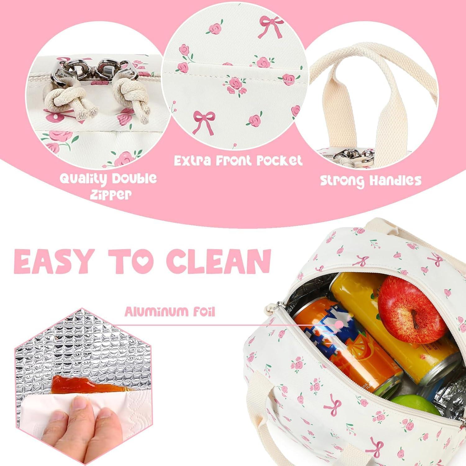 Bluboon Lunch Box for Women Cute Lunch Bag Reusable Insulated Lunch Bags Large Capacity Lunchbox Cooler for Work Picnic or Travel(Bow Floral Pink 212)