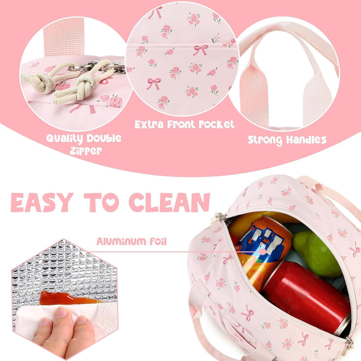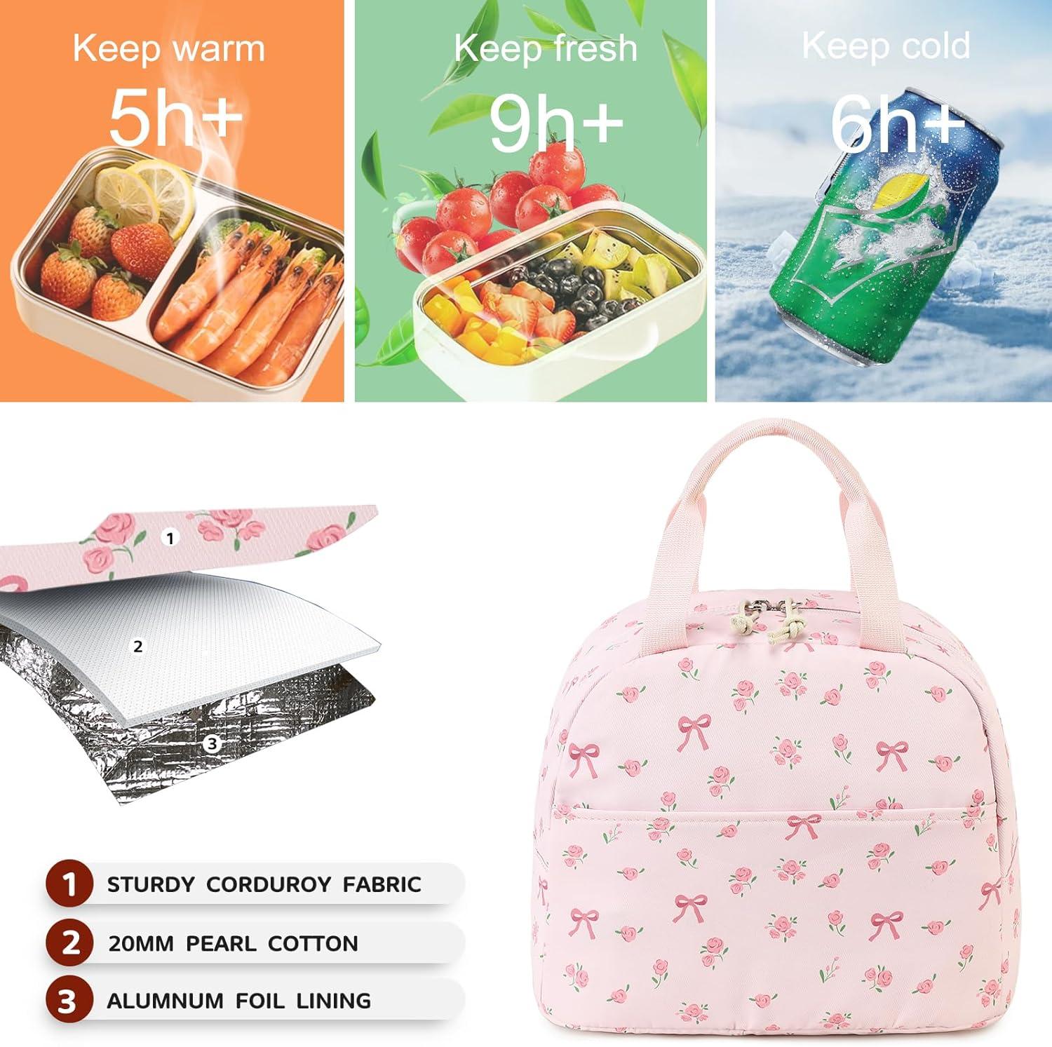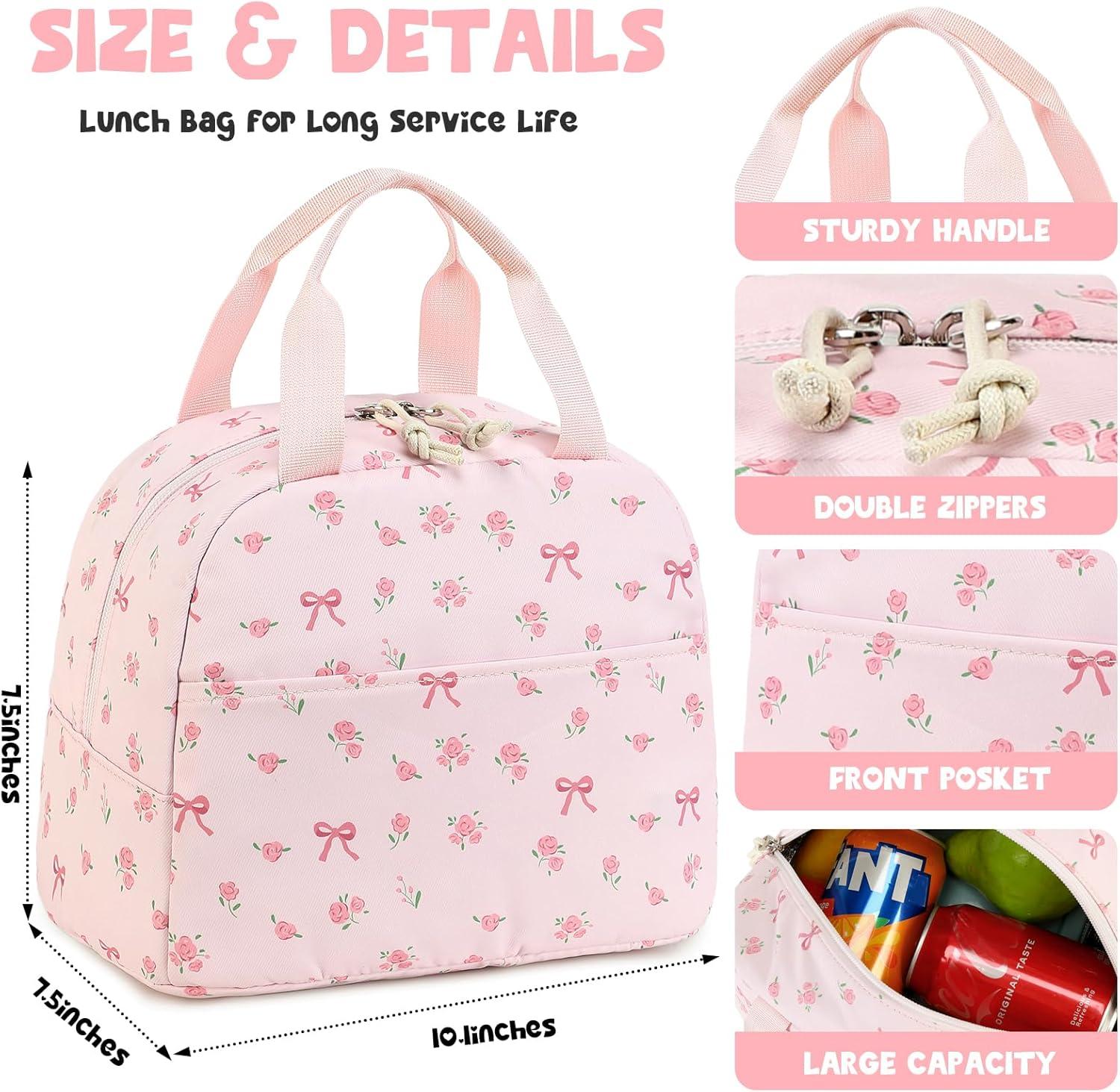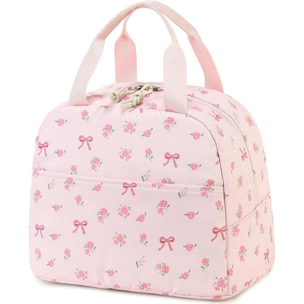 Bluboon Lunch Box for Women Cute Lunch Bag Reusable Insulated Lunch Bags Large Capacity Lunchbox Cooler for Work Picnic or Travel(Bow Floral Pink 212)