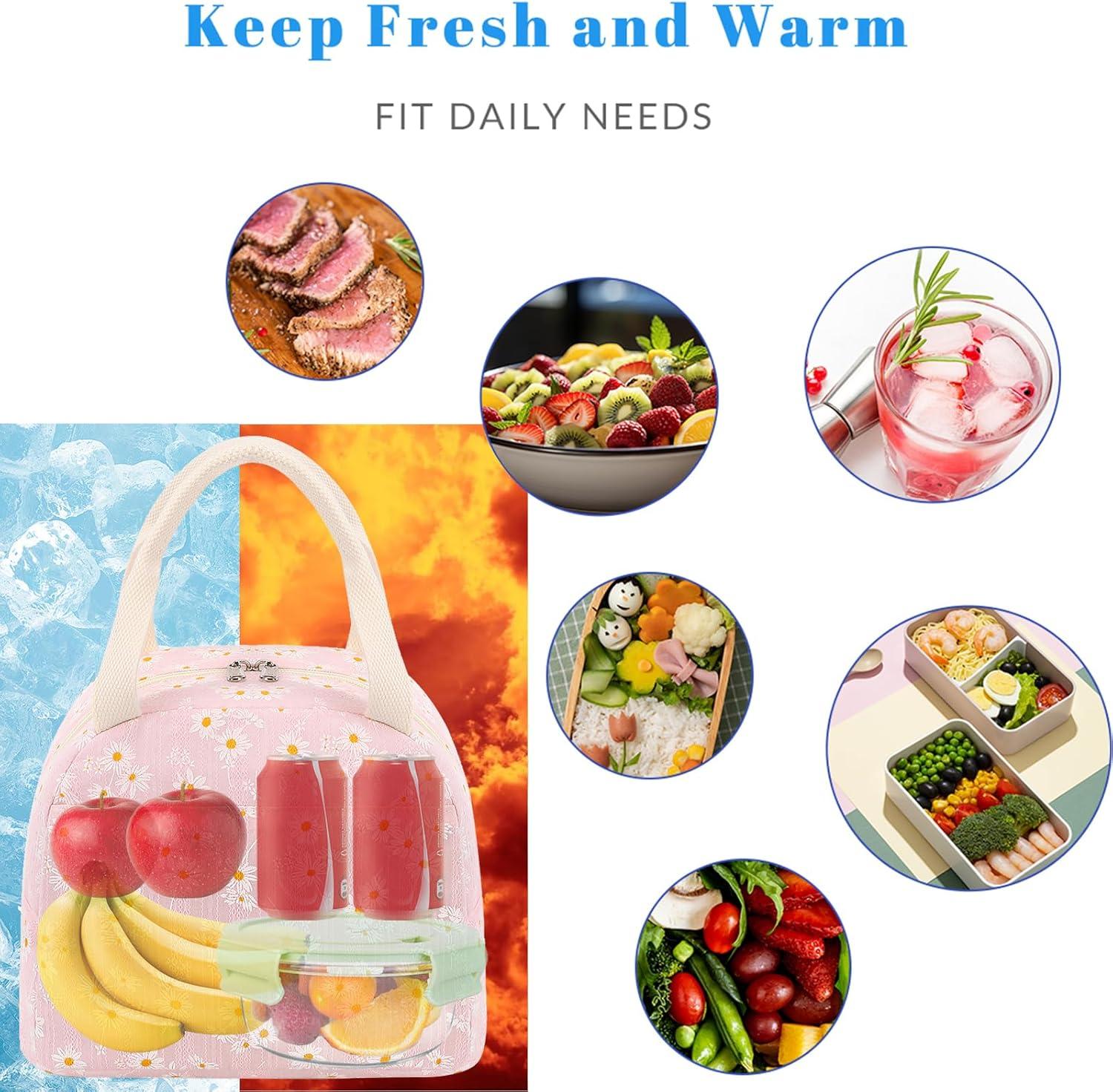 Spacious and Lightweight:Lunch bag women measures L10.6 x W 6.3 x H 8.6inches, 0.38 pounds,Lunch tote bag for girls is spacious enough to fit your lunch box. Insulated Cooler with perfect standard size can keep your food cool or warm. Allow your food to be fresh and delicious.