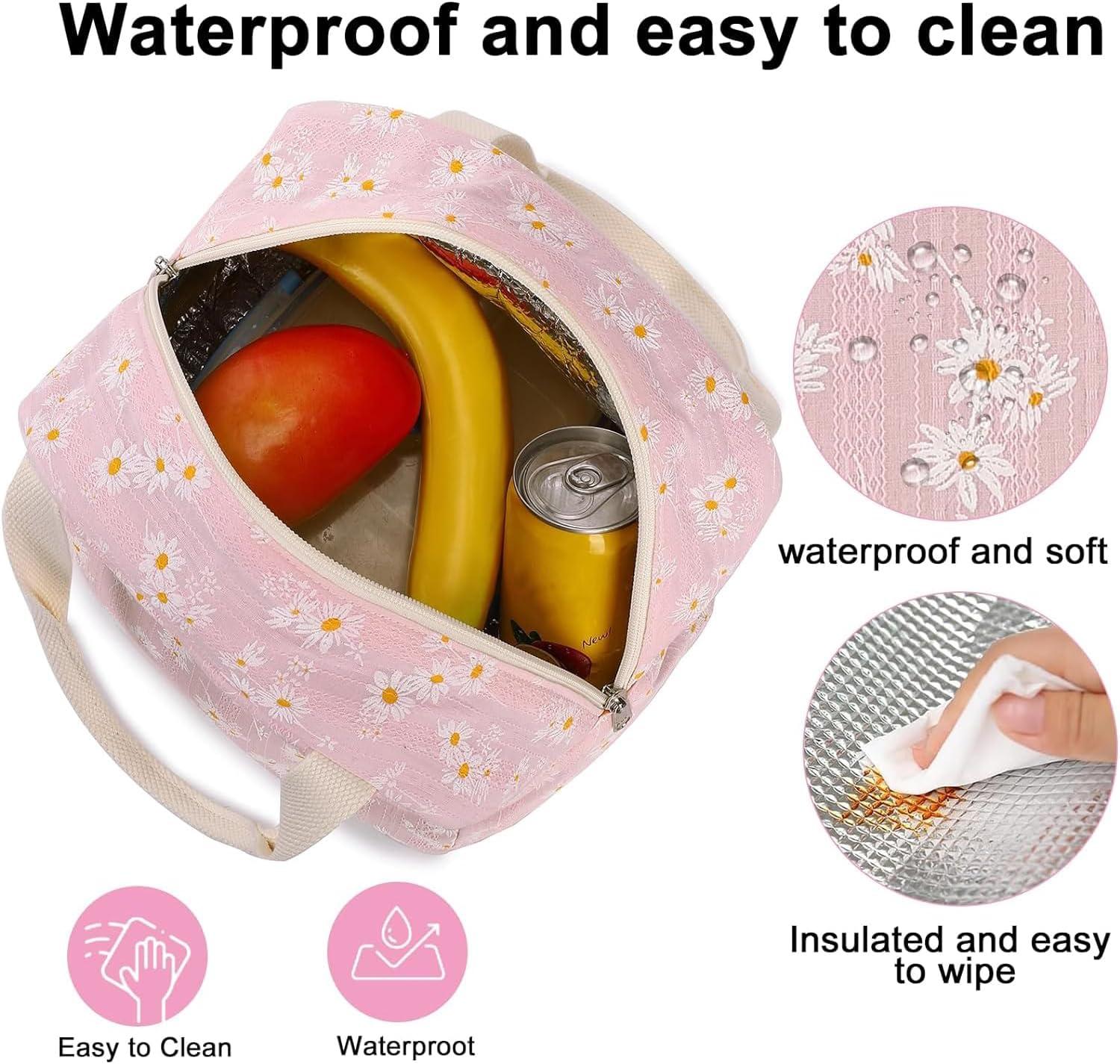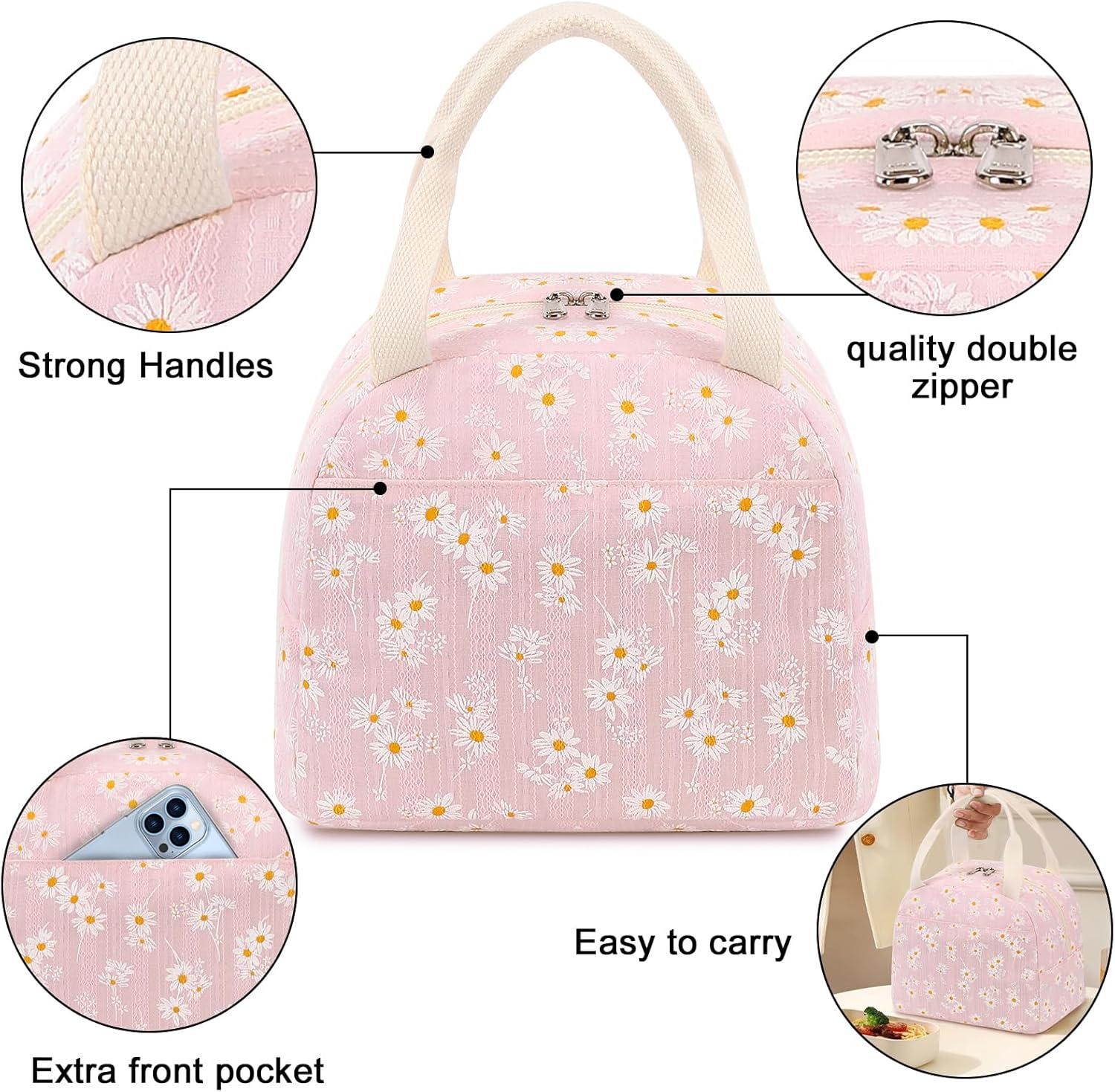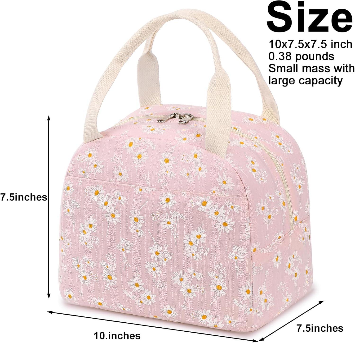 Bluboon Lunch Box for Women Cute Lunch Bag Reusable Insulated Lunch Bags Large Capacity Lunchbox Cooler for Work Picnic or Travel(White daisies pink)