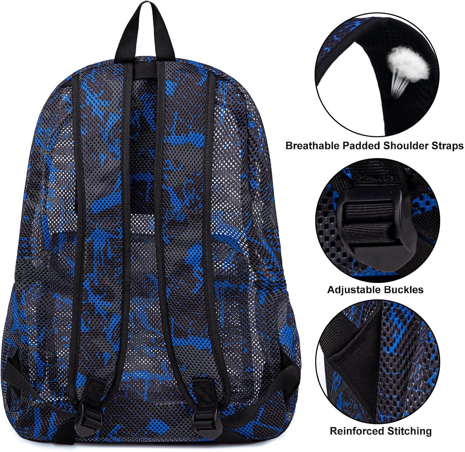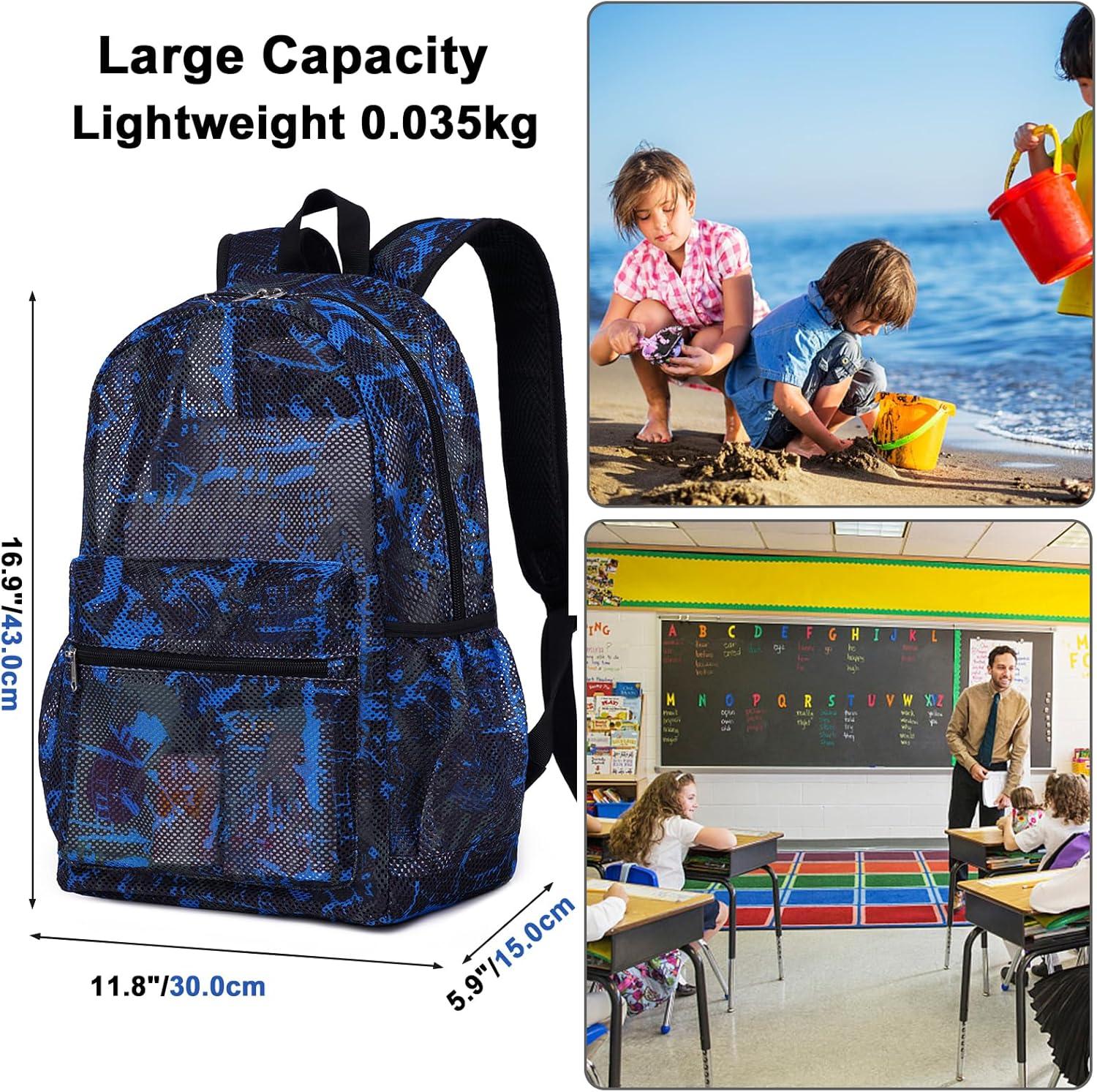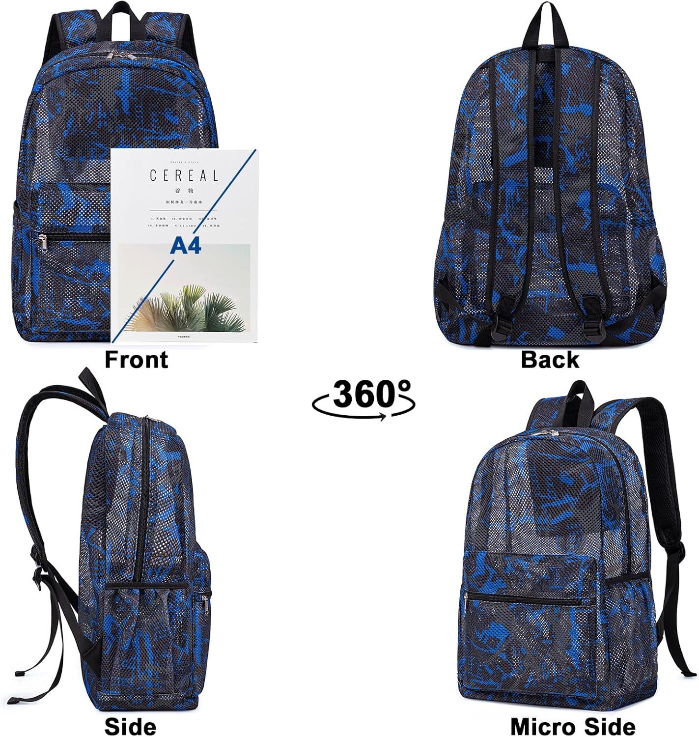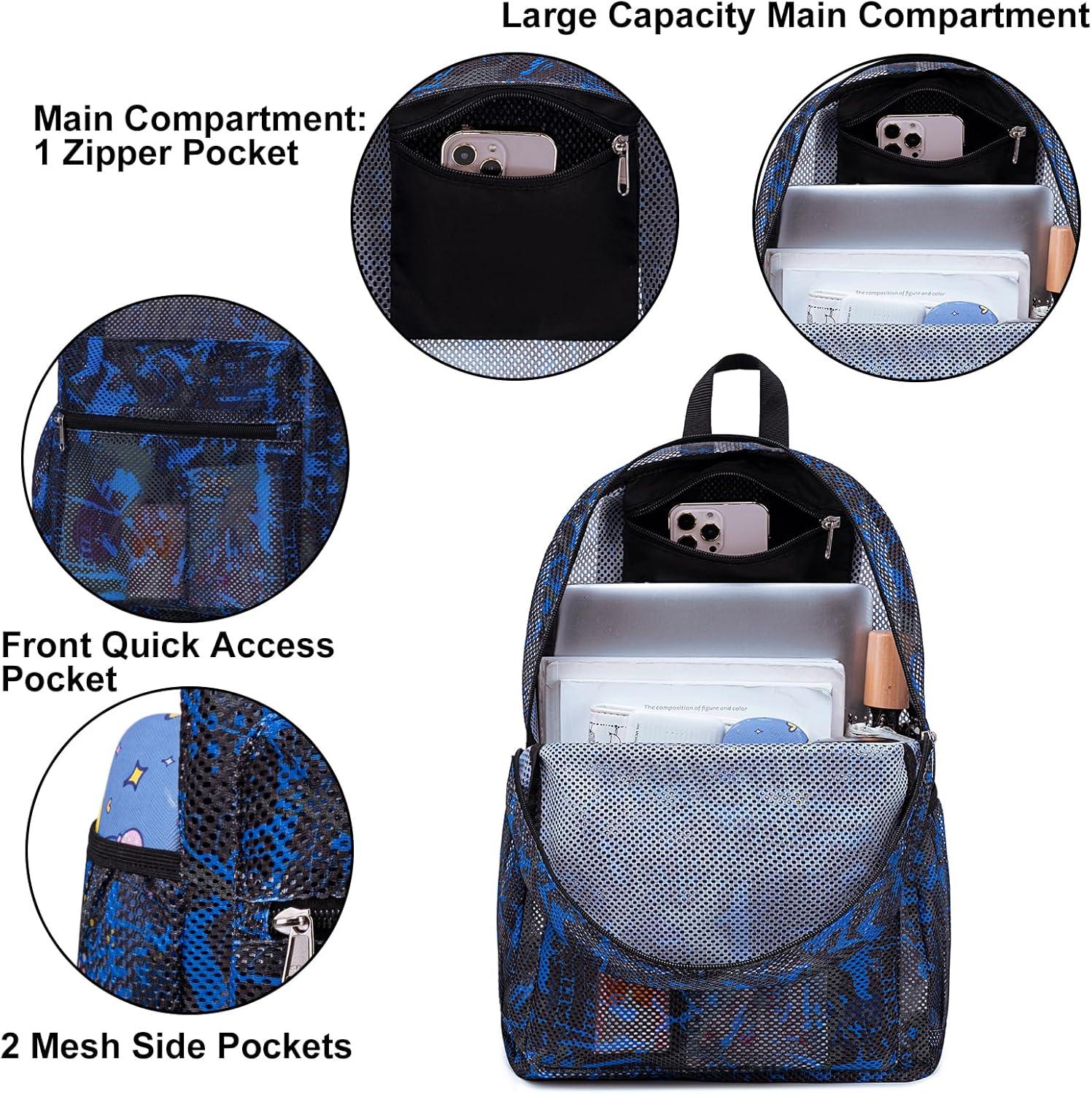 Bluboon Mesh Backpack for Girls Kids Semi-Transparent School Bookbag See Through Beach Bag Daypack(Graffiti)