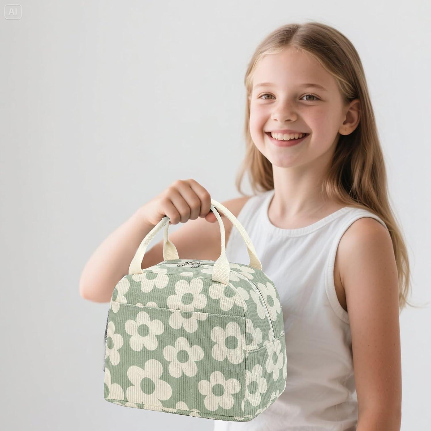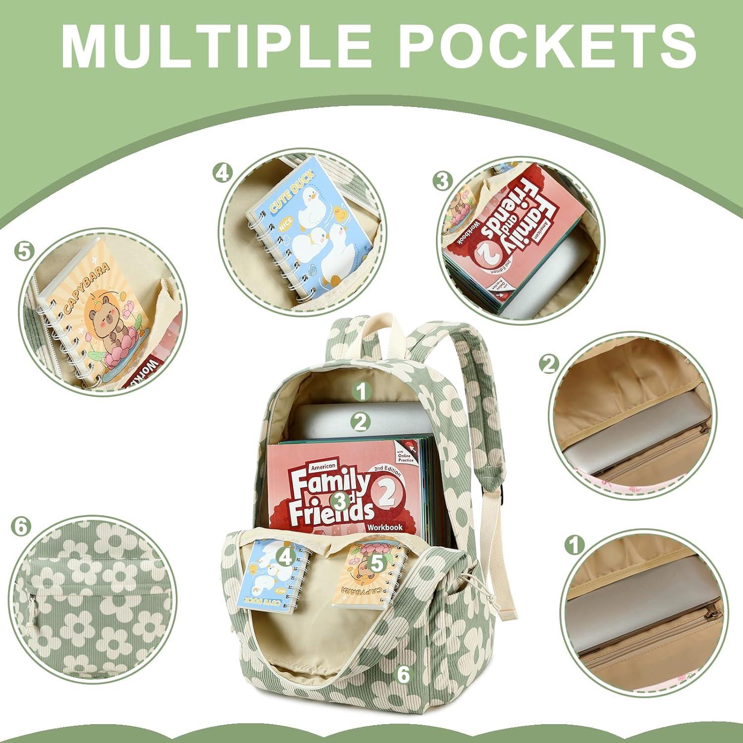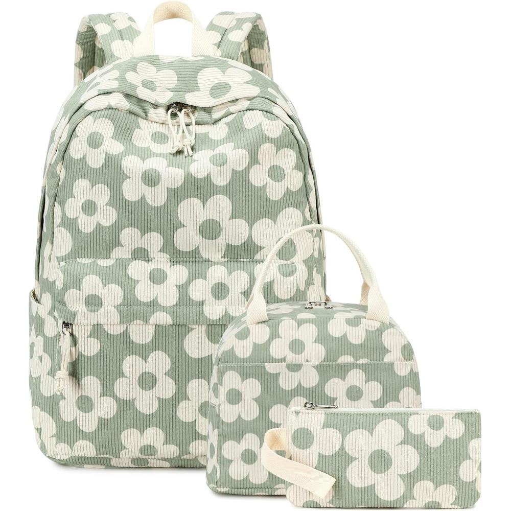 Bluboon School Backpack Teens Girls Boys Kids School Book Bags with Lunch Box Pencil Bag(Beige Floral / Green-gray Base)
