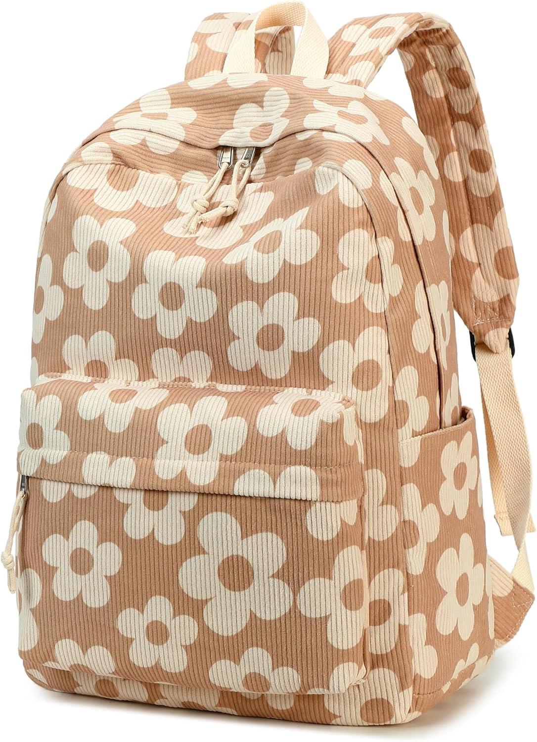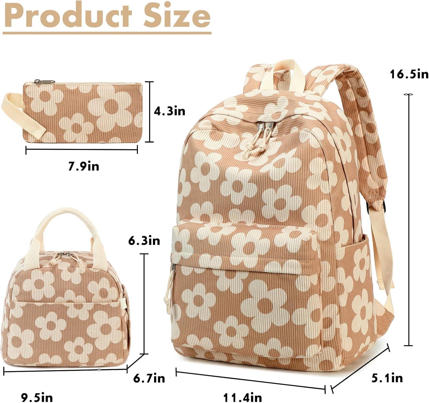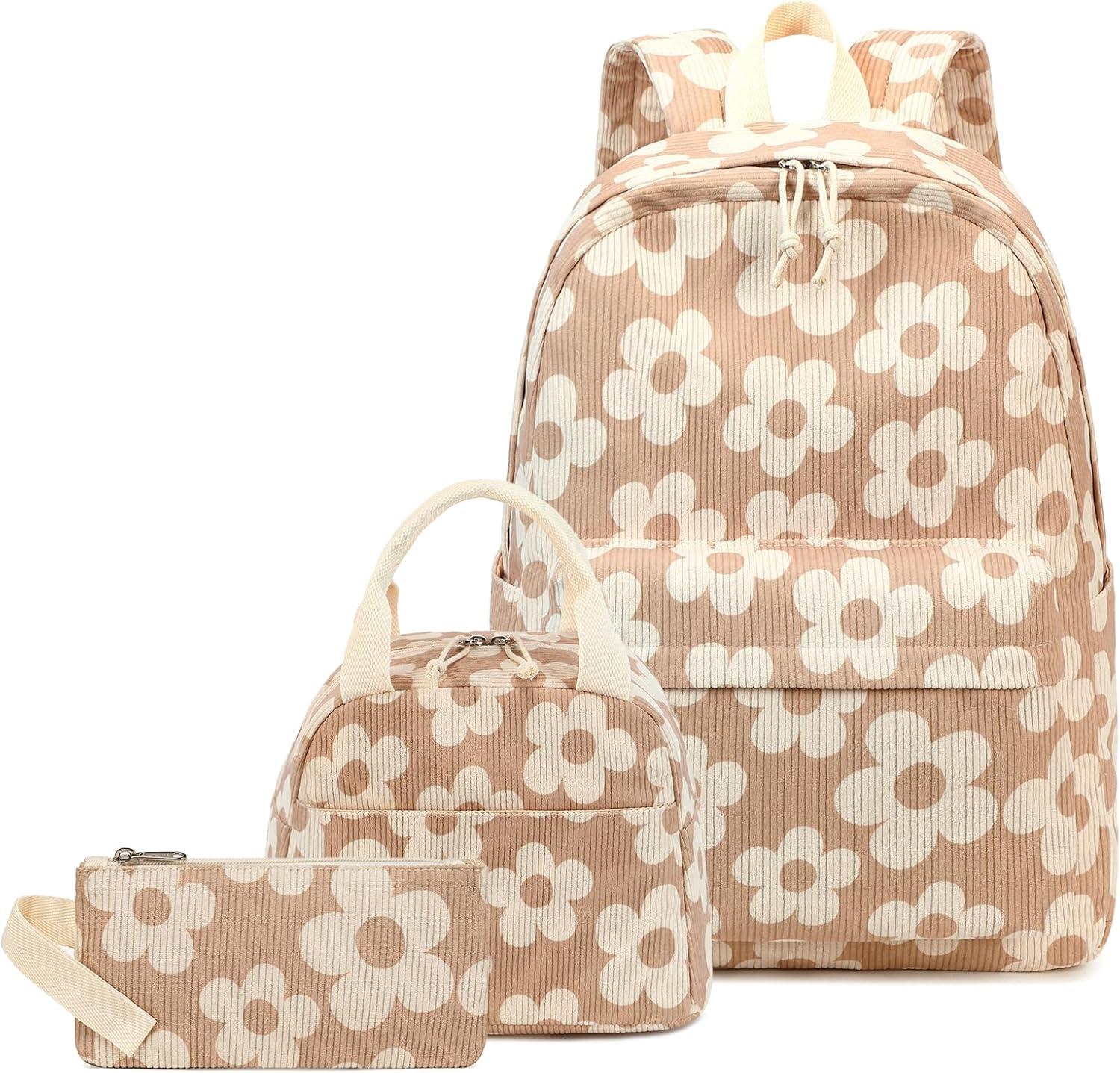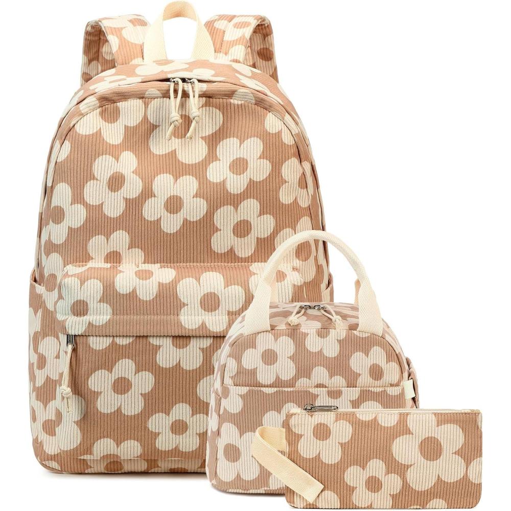 Bluboon School Backpack Teens Girls Boys Kids School Book Bags with Lunch Box Pencil Bag(Beige Flower Brown Base)