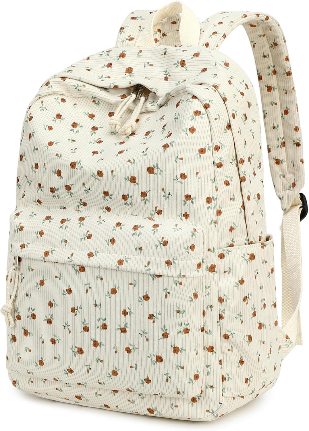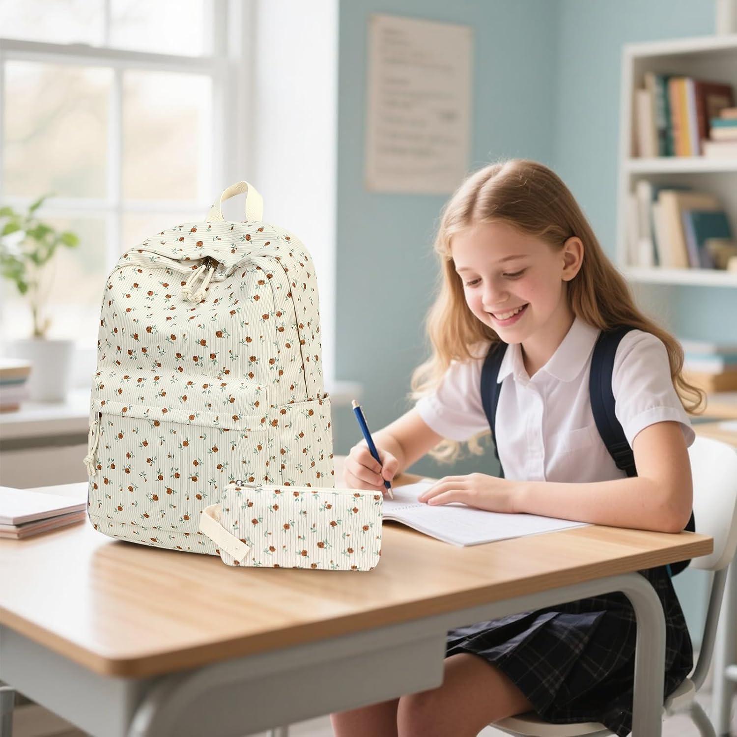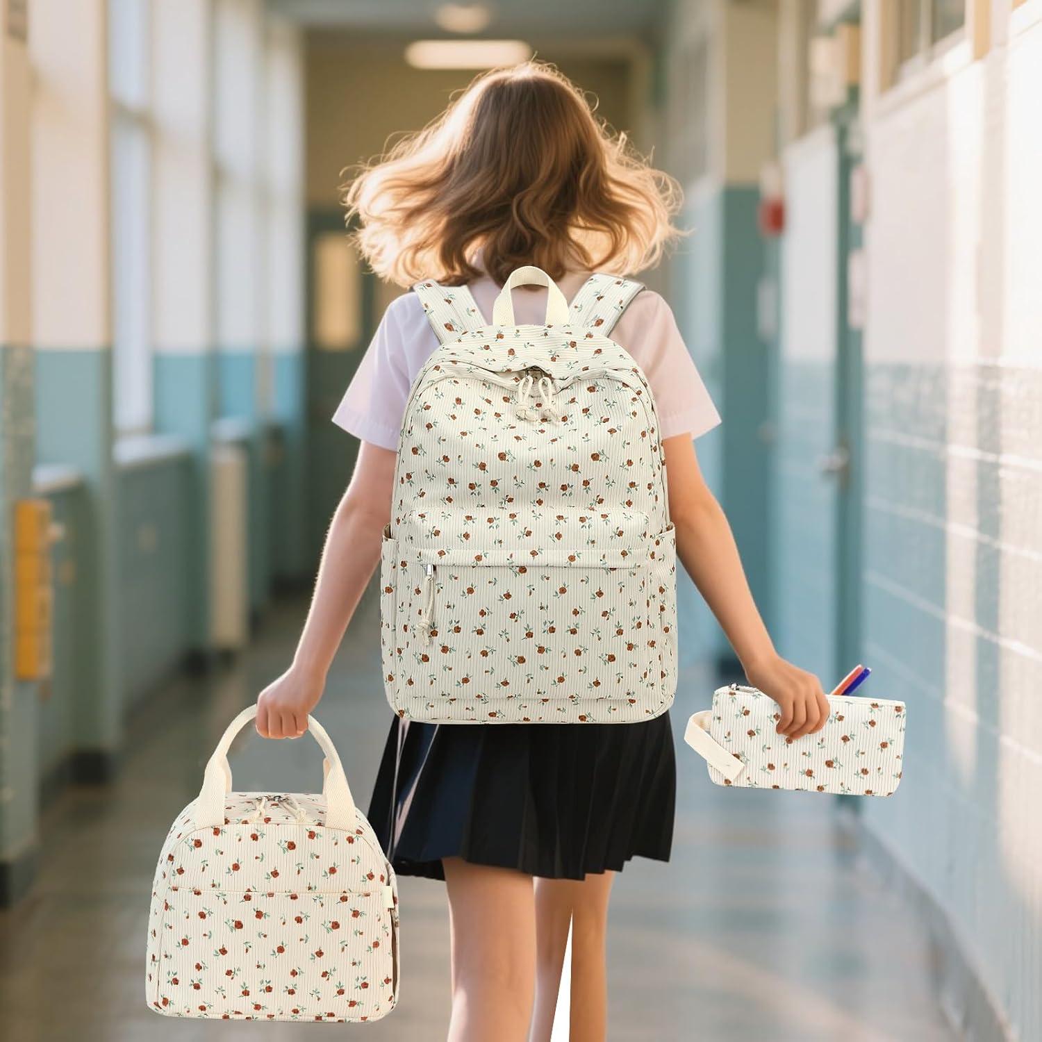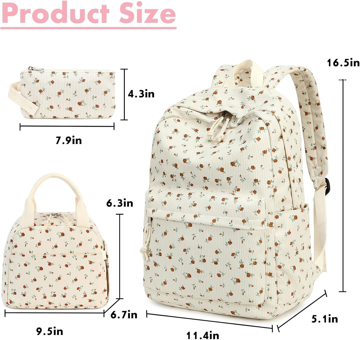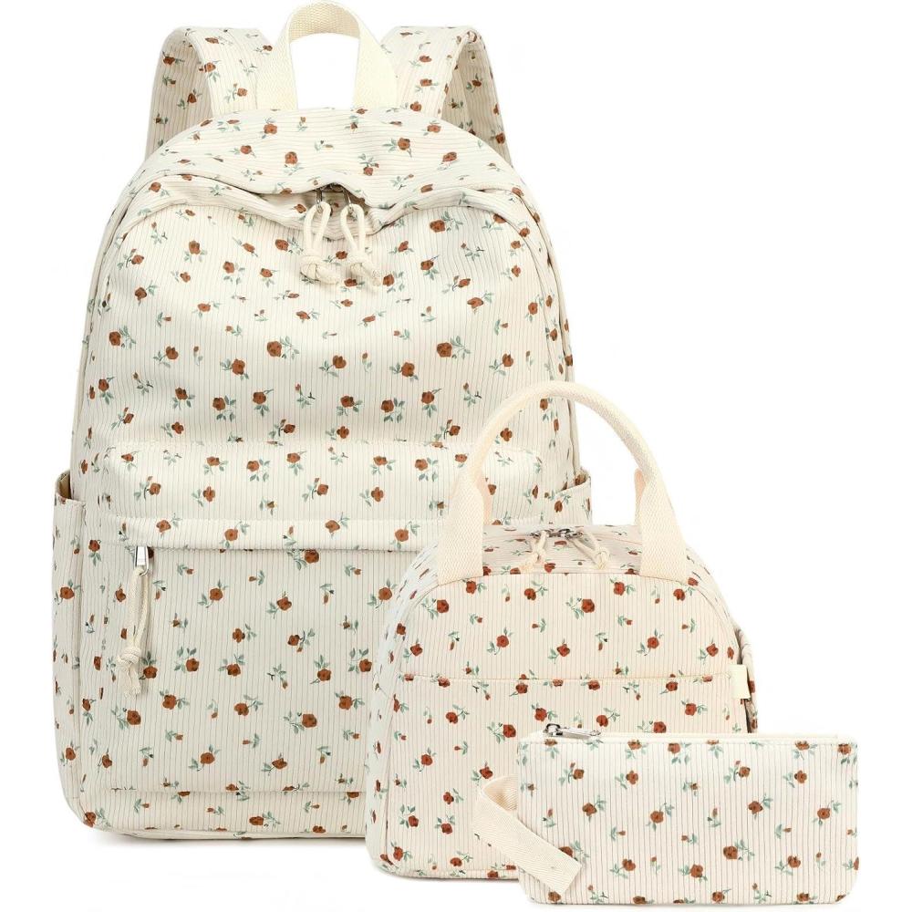 Bluboon School Backpack Teens Girls Boys Kids School Book Bags with Lunch Box Pencil Bag(Brown Floral Beige Base)