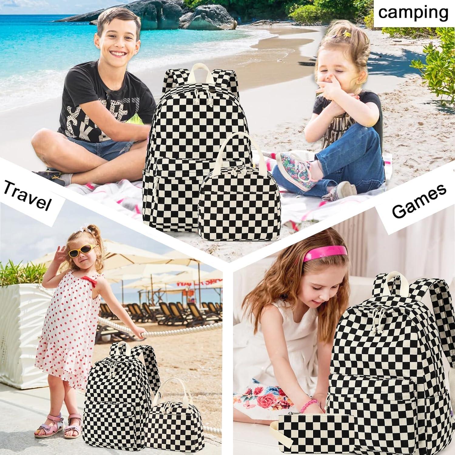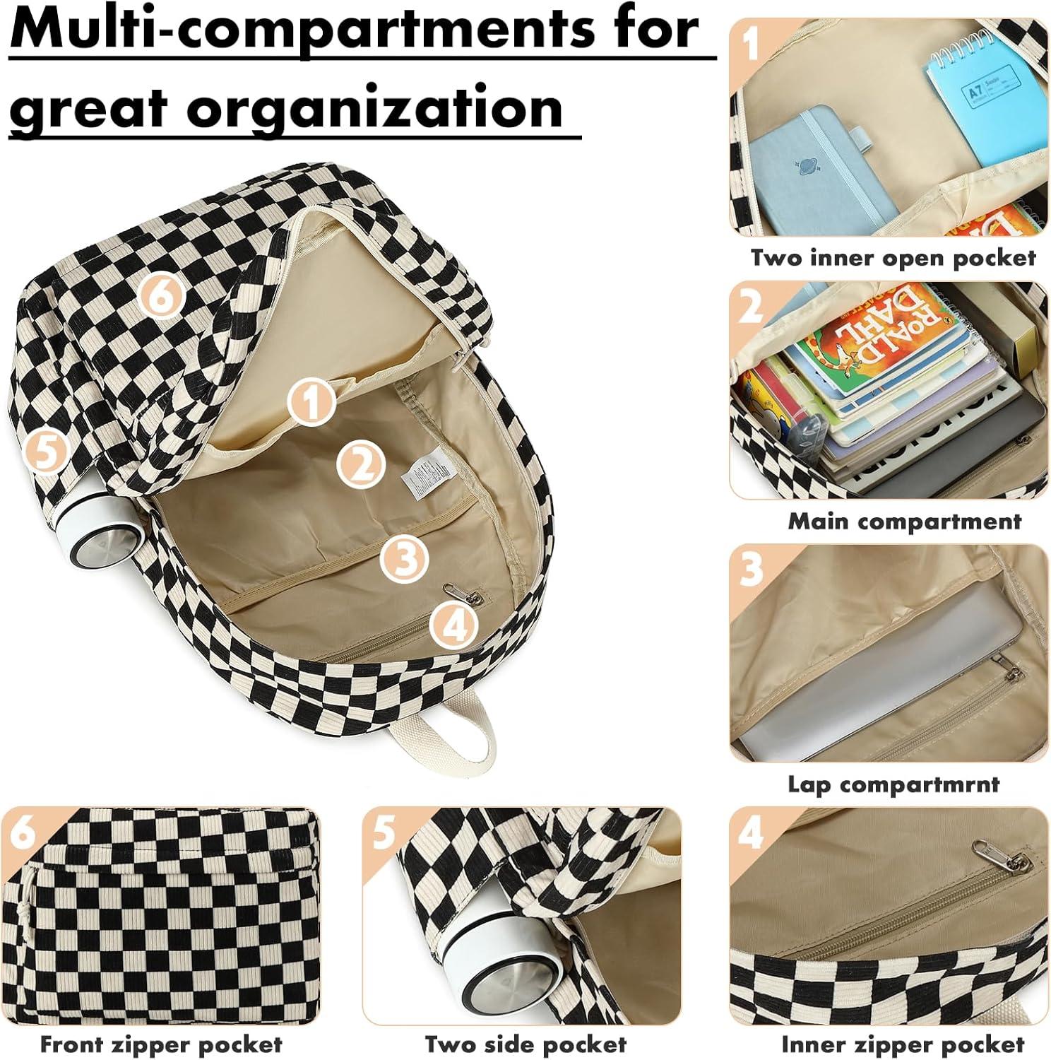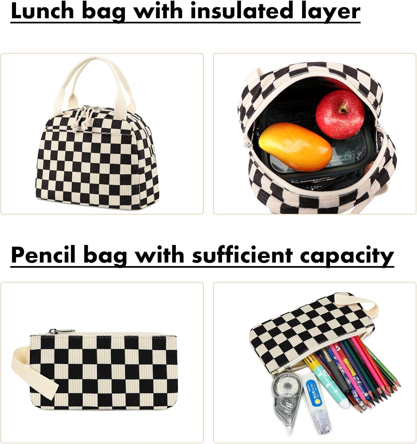 imageBluboon School Backpack Teens Girls Boys Kids School Book Bags with Lunch Box Pencil BagCorduroy Black Checkered 1