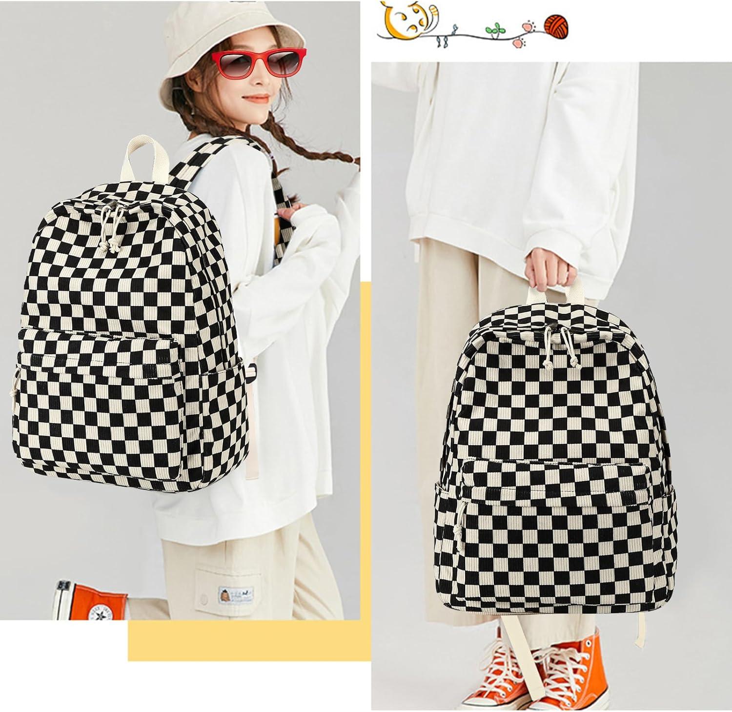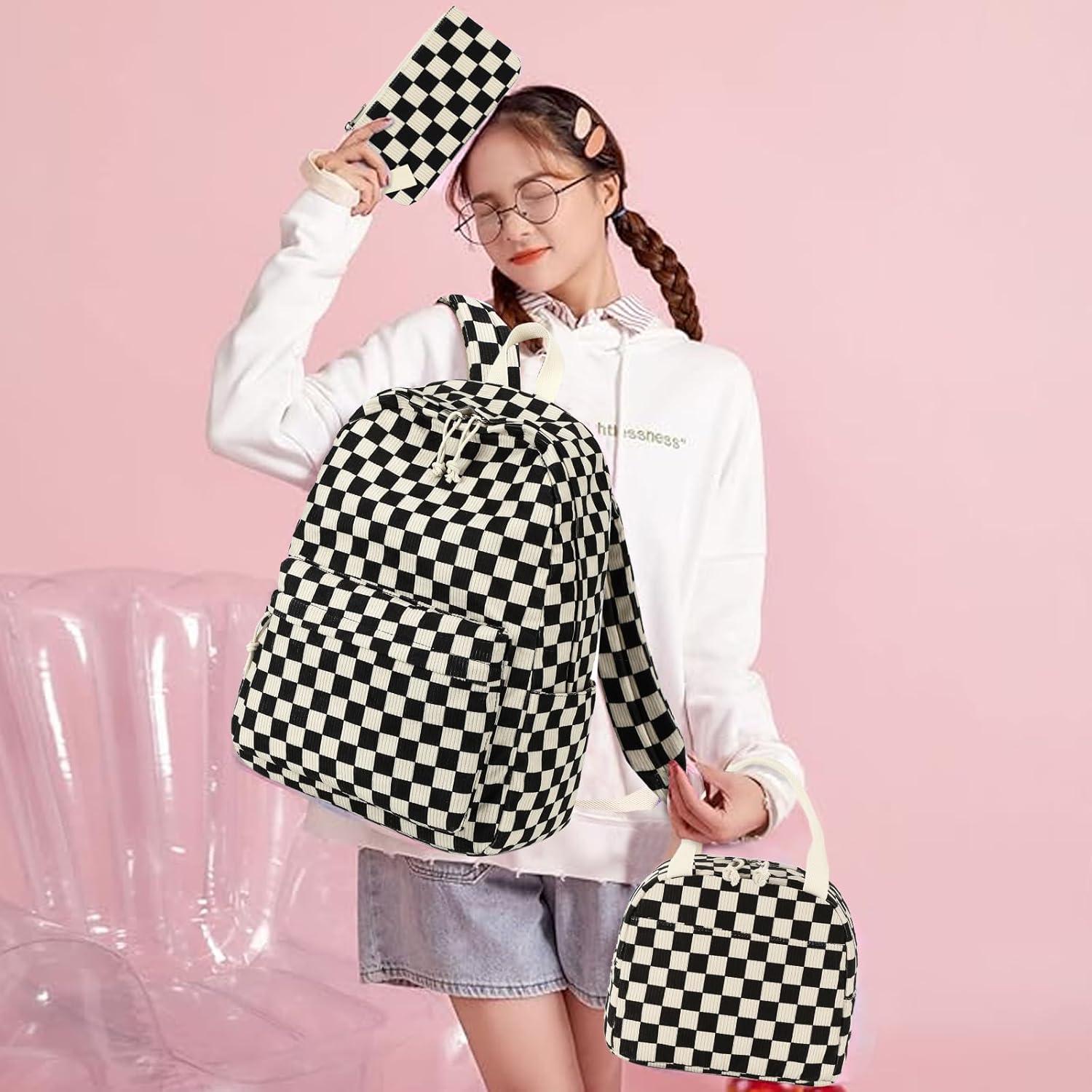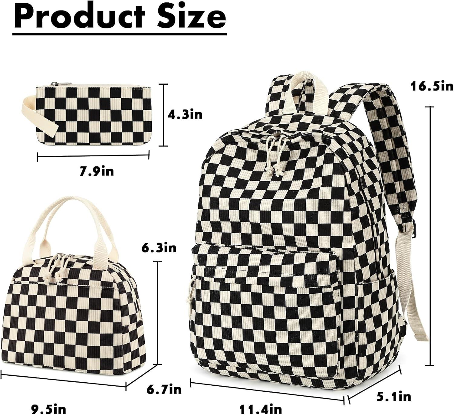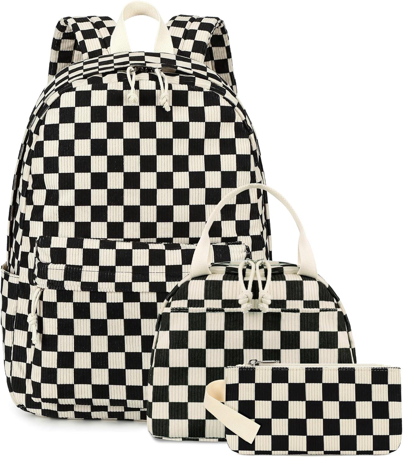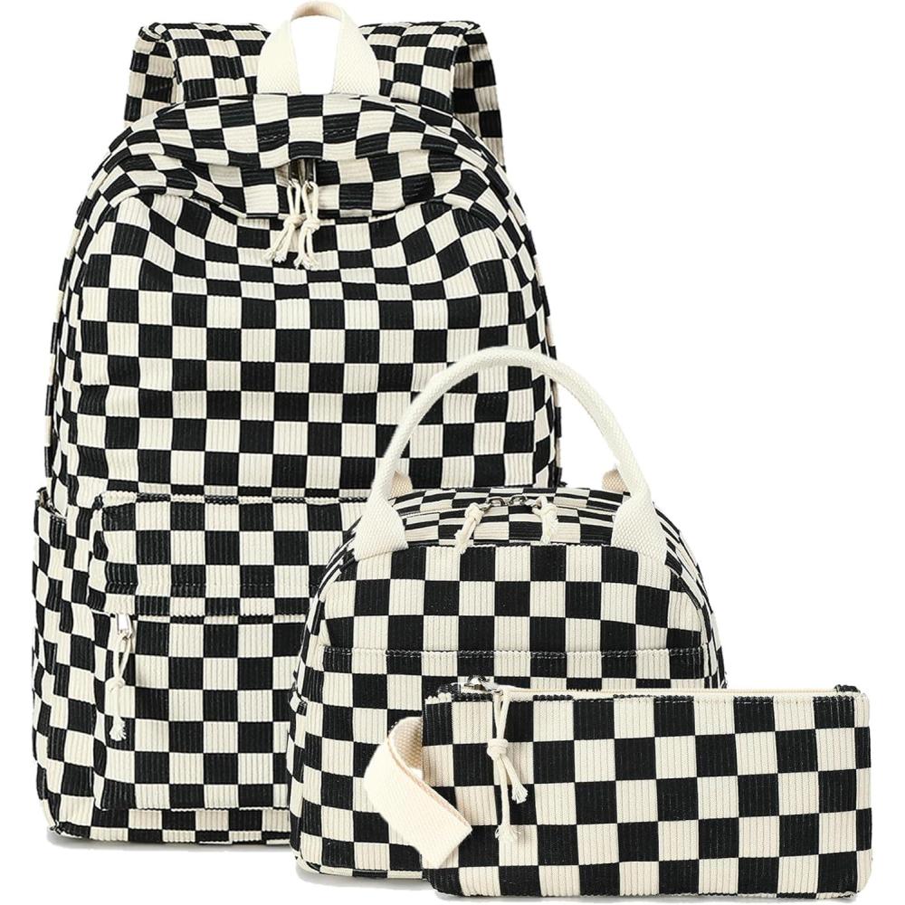 Bluboon School Backpack Teens Girls Boys Kids School Book Bags with Lunch Box Pencil Bag(Corduroy Black Checkered 1)