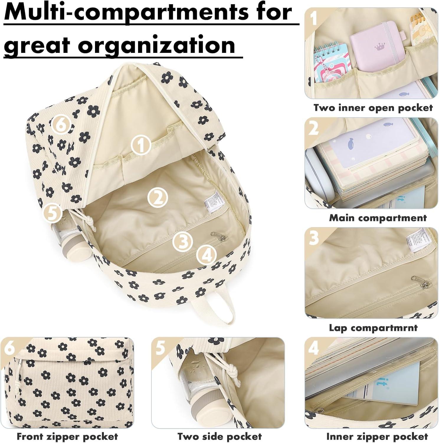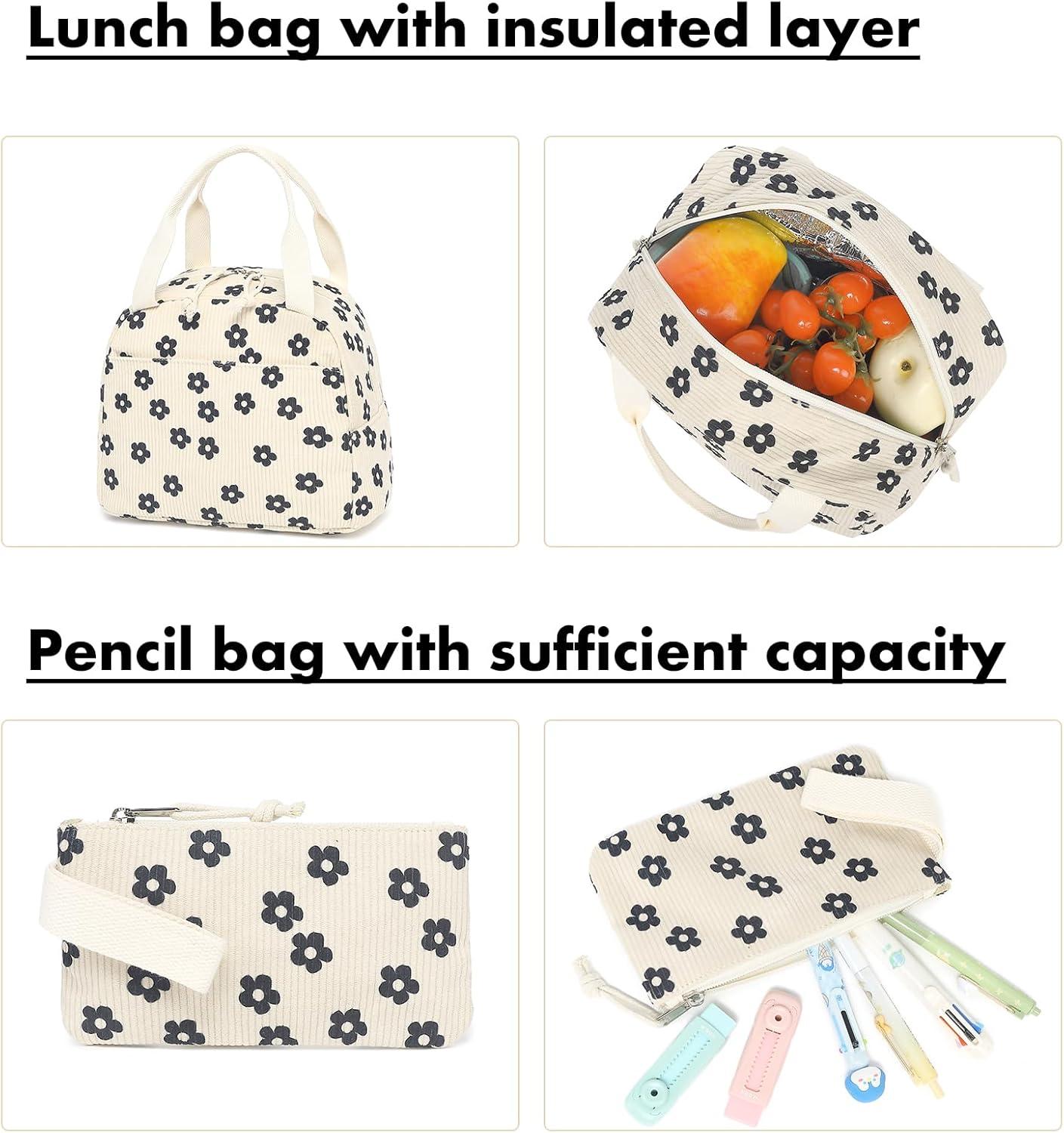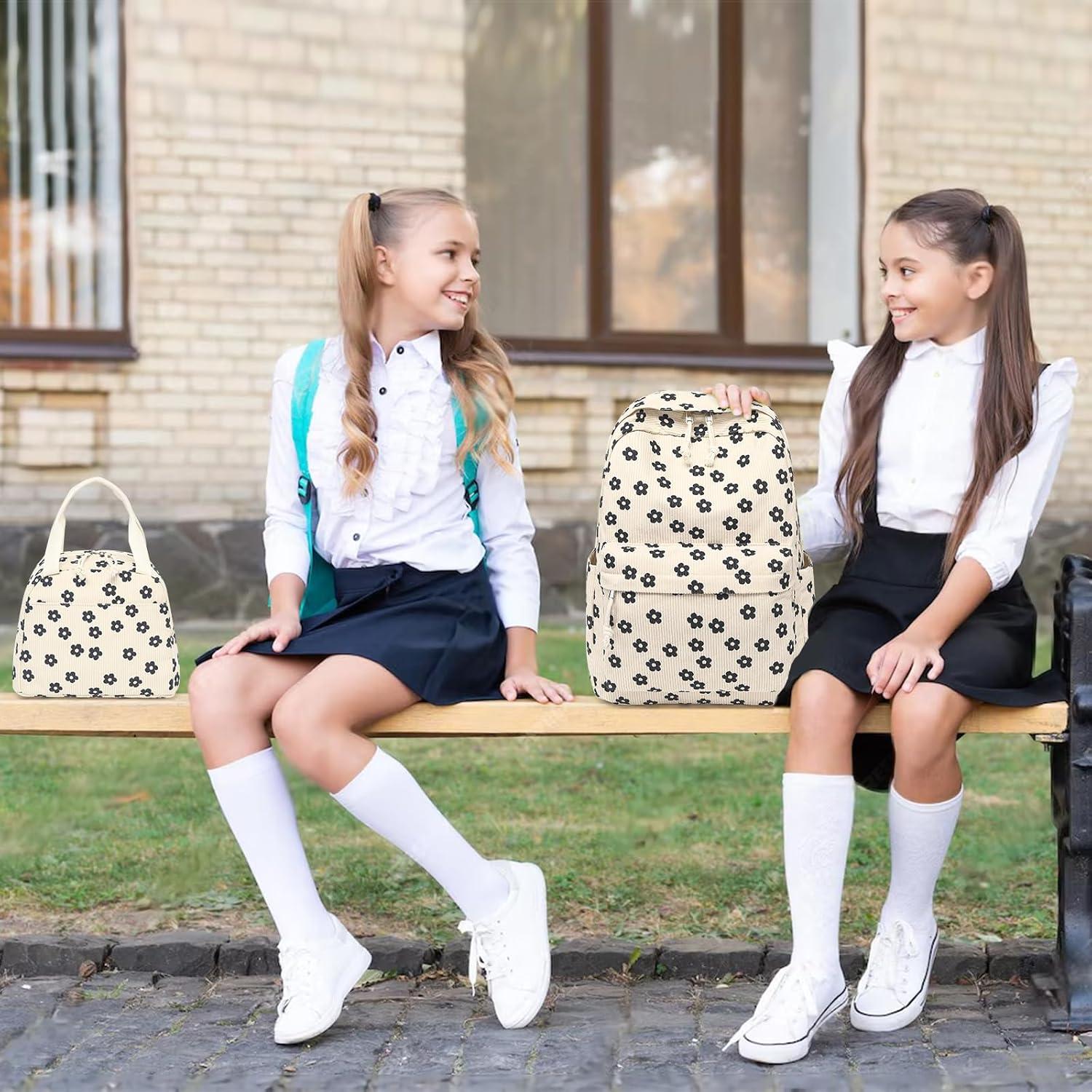 Bluboon School Backpack Teens Girls Boys Kids School Book Bags with Lunch Box Pencil Bag(Corduroy Floral)