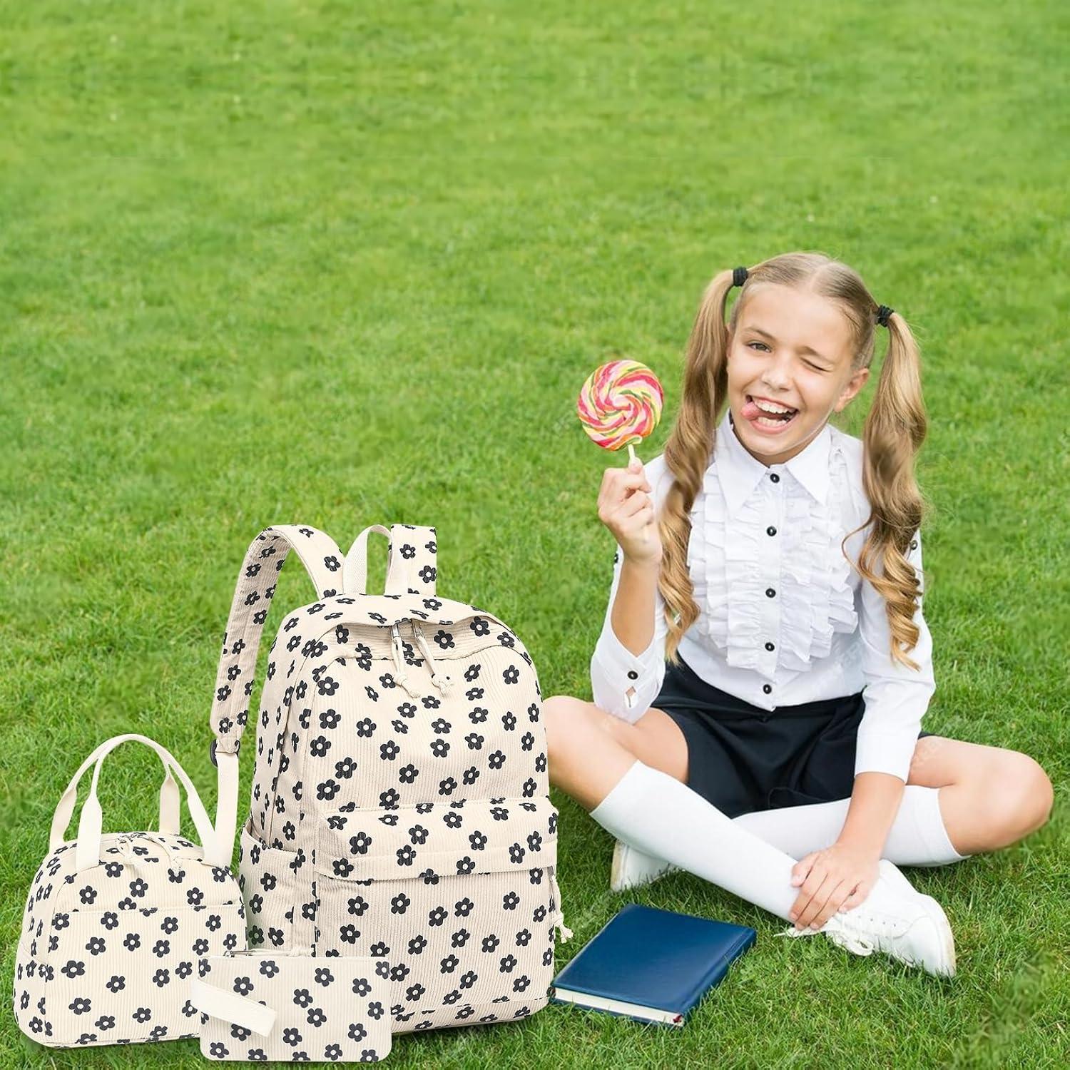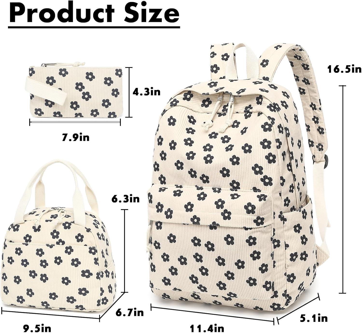 Bluboon School Backpack Teens Girls Boys Kids School Book Bags with Lunch Box Pencil Bag(Corduroy Floret)