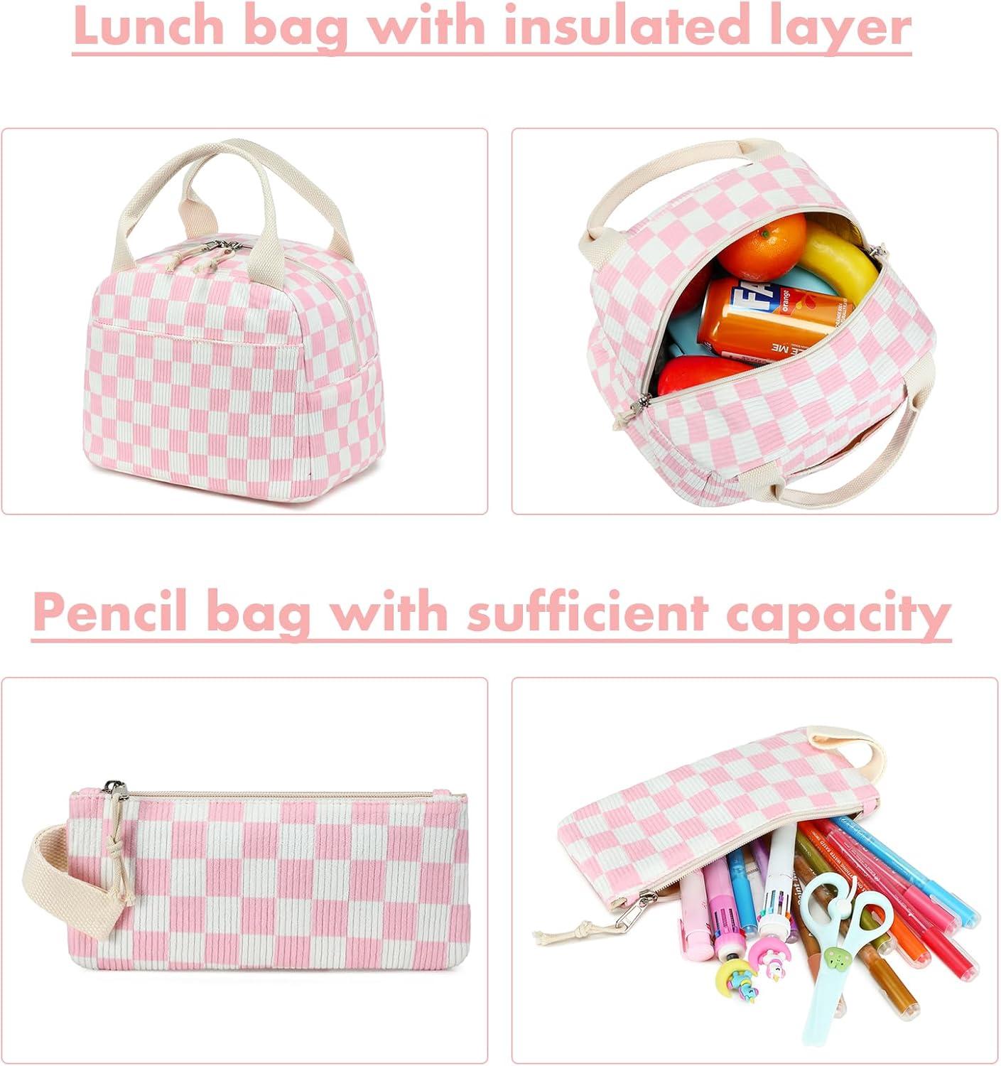imageBluboon School Backpack Teens Girls Boys Kids School Book Bags with Lunch Box Pencil BagPink Checked3