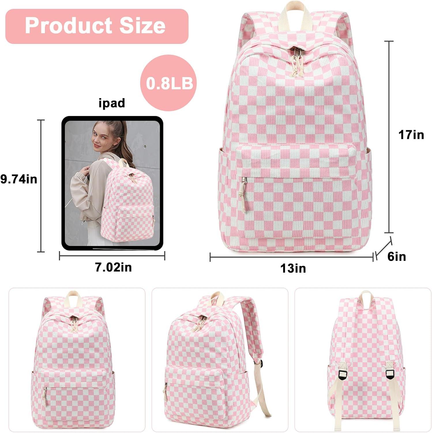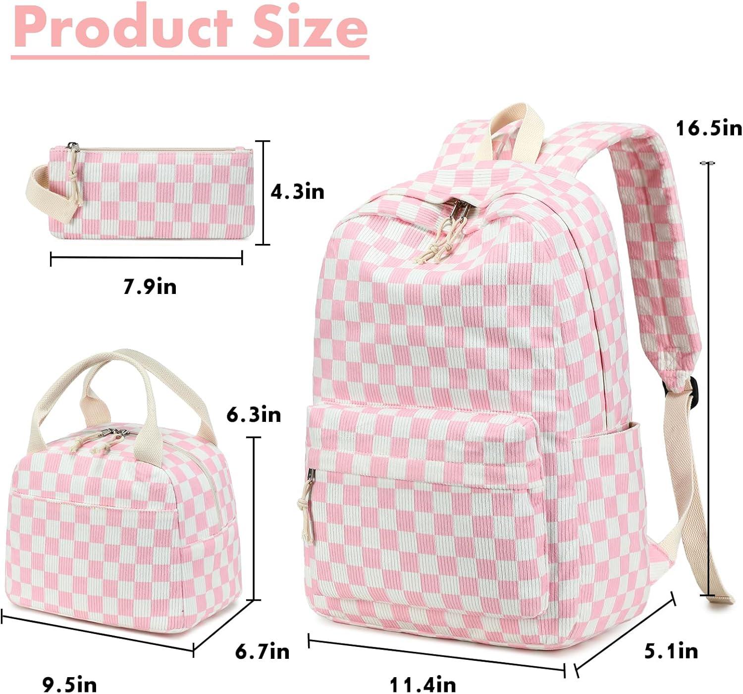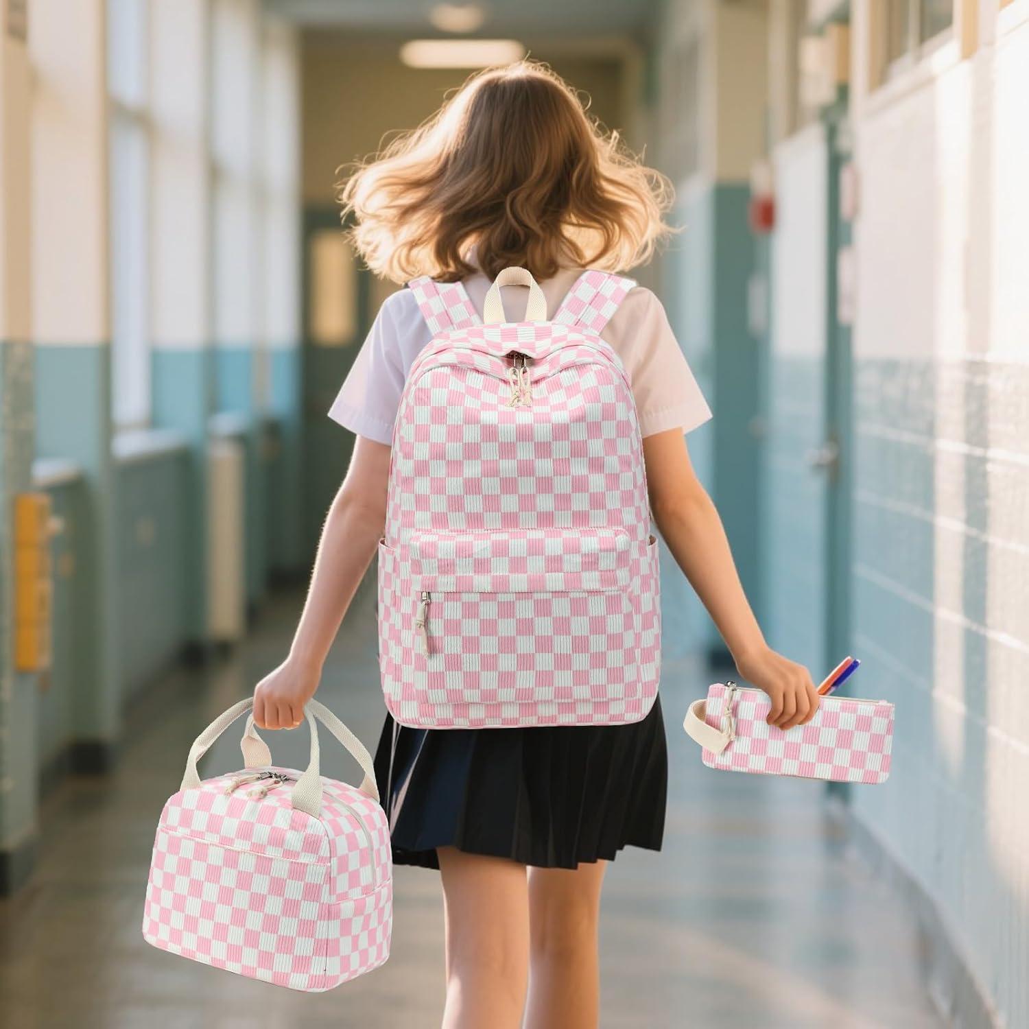 Bluboon School Backpack Teens Girls Boys Kids School Book Bags with Lunch Box Pencil Bag(Pink Checked-3)