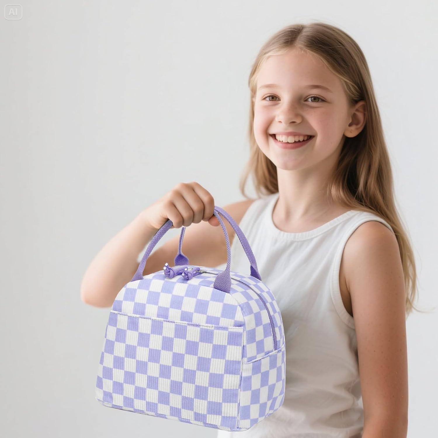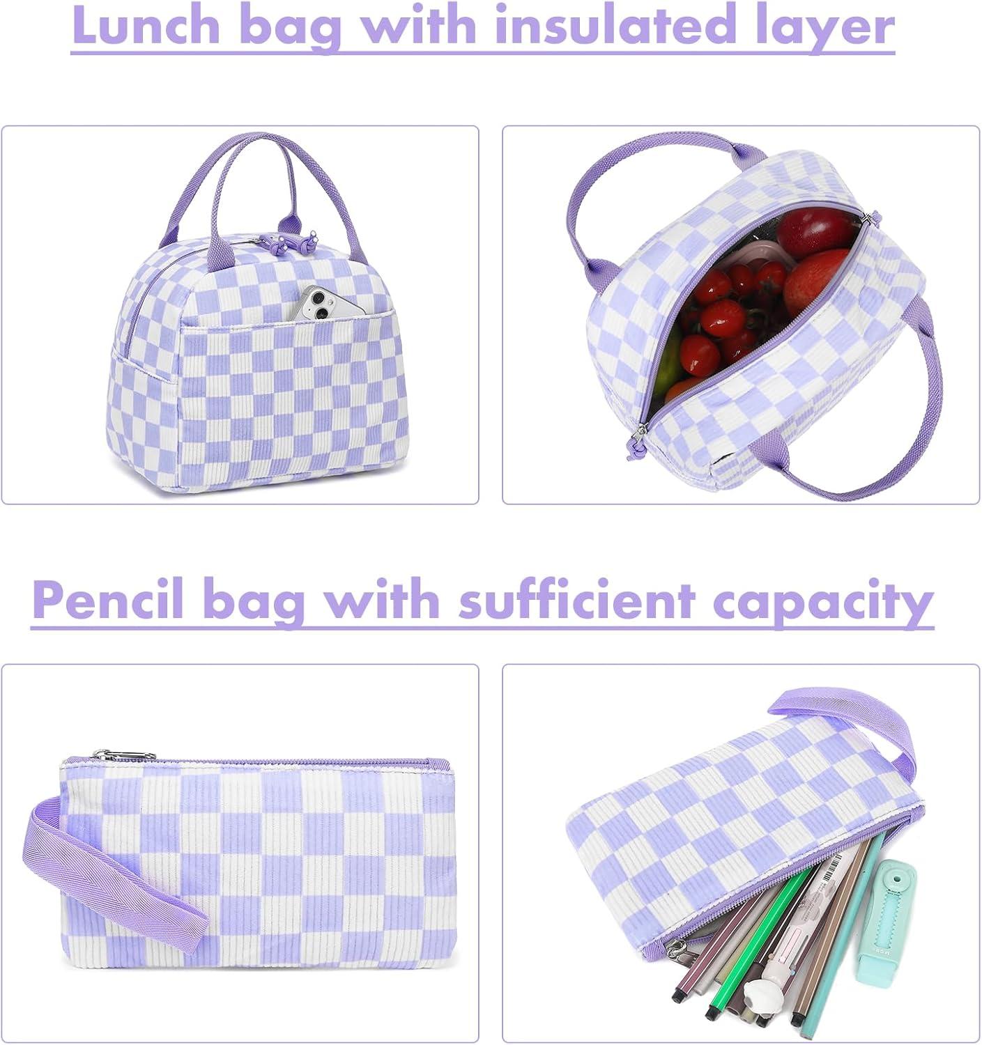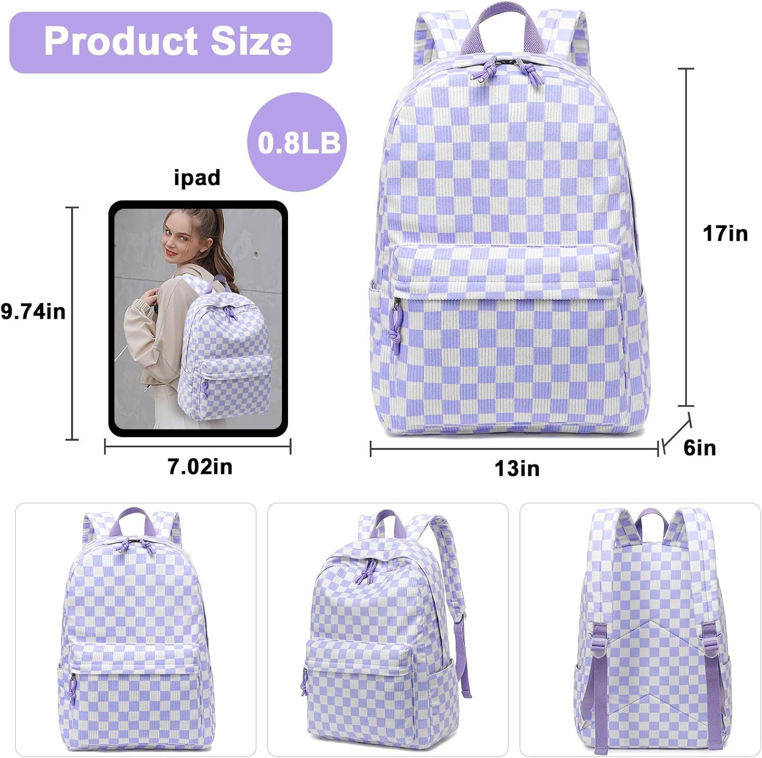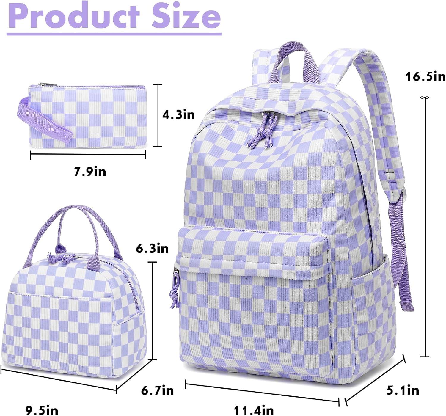 Bluboon School Backpack Teens Girls Boys Kids School Book Bags with Lunch Box Pencil Bag(Purple and White Checkered)