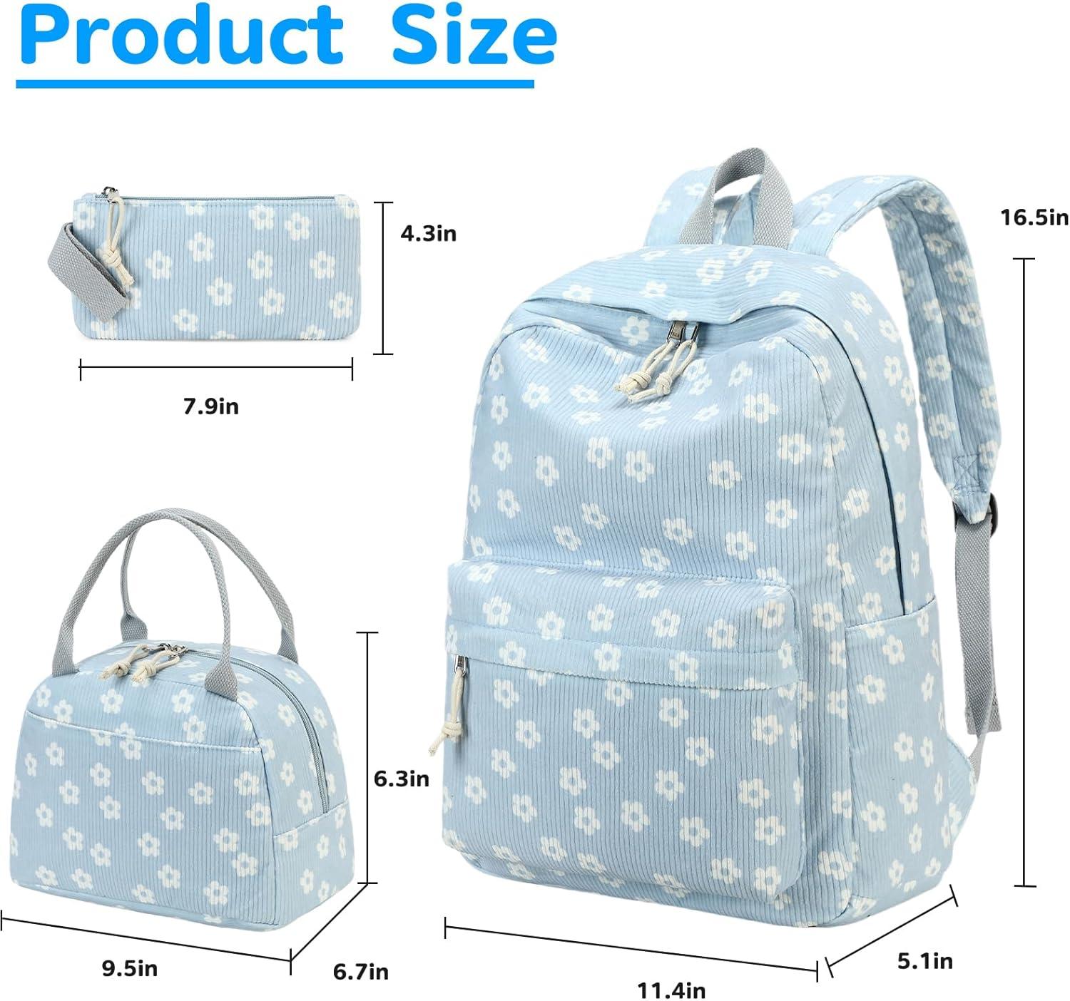 Bluboon School Backpack Teens Girls Boys Kids School Book Bags with Lunch Box Pencil Bag(White Little Flower 95)