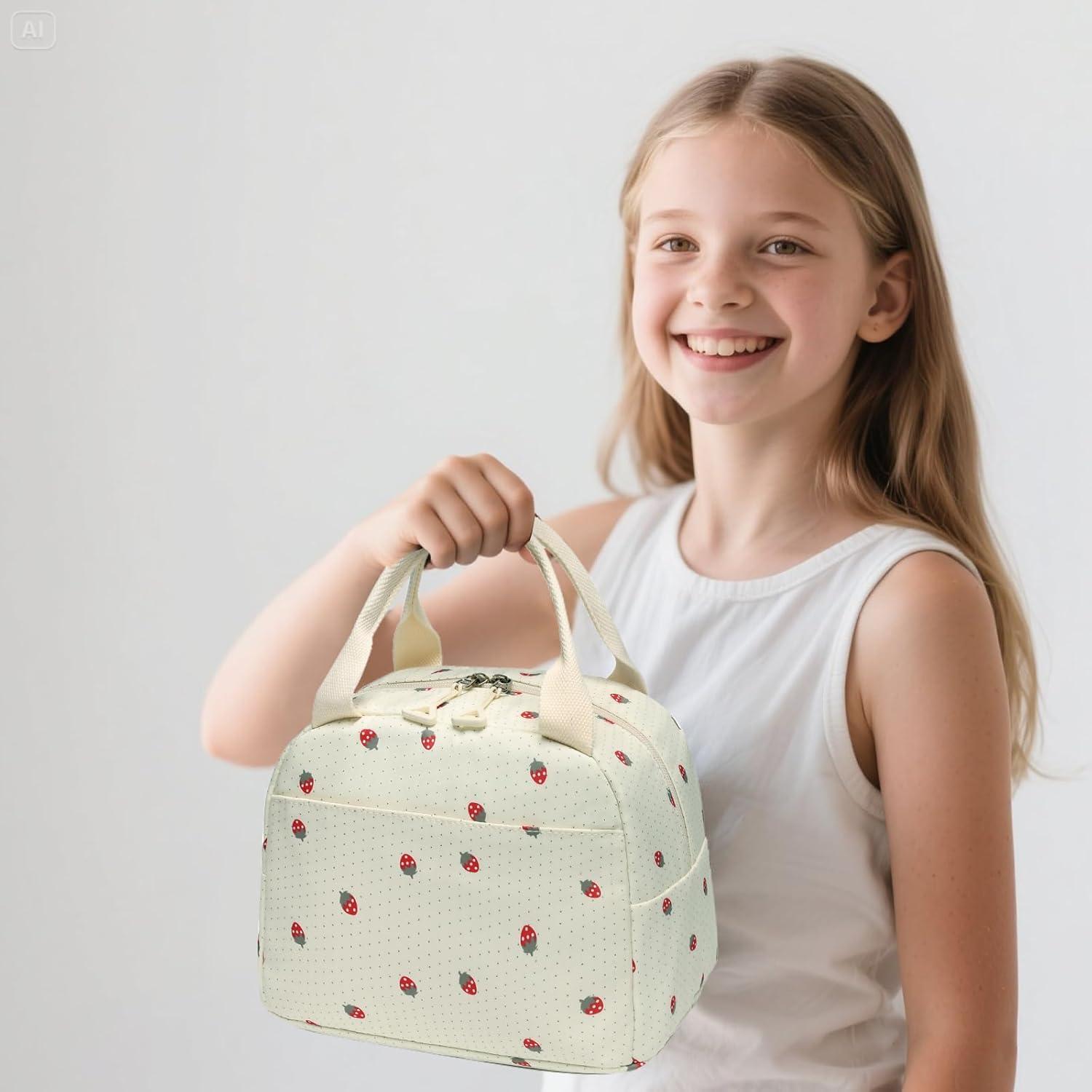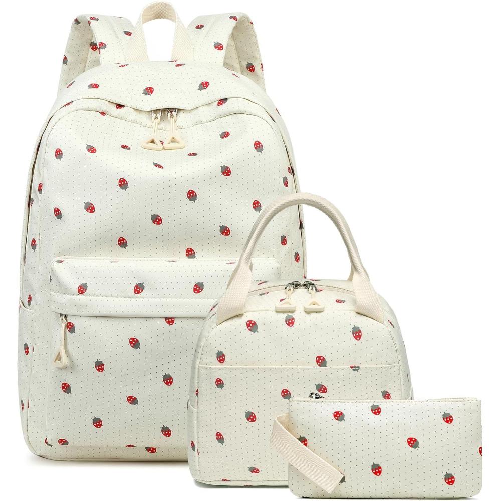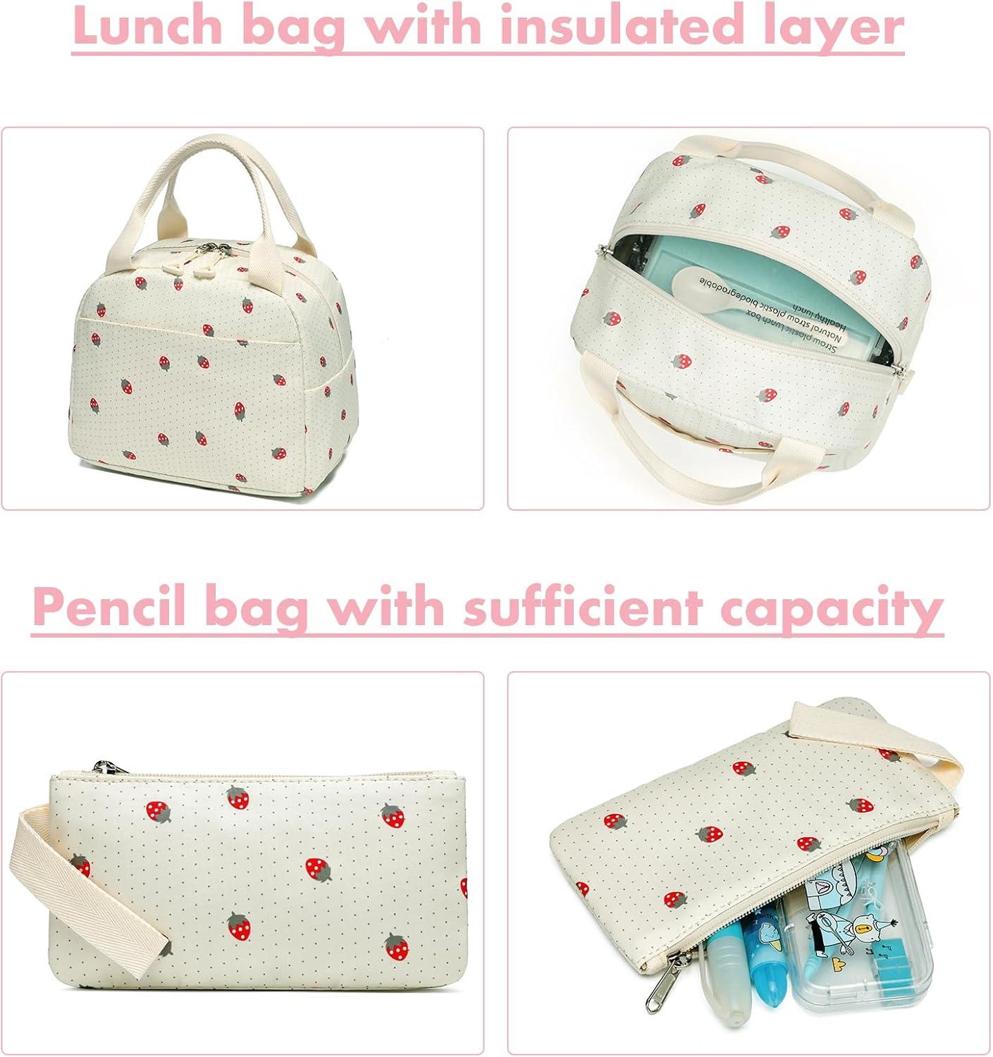 Bluboon Teen Girls School Backpack Kids Bookbag Set with Lunch Box Pencil Case Travel Laptop Backpack Casual Daypacks (Marble Pink-Blue)(Strawberry Beige Base)