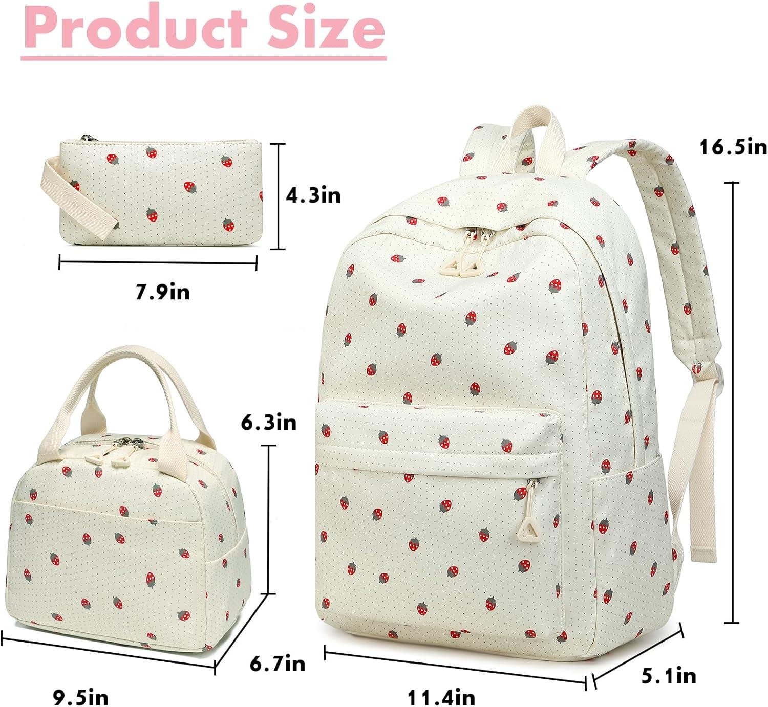 ❤School Backpack set including girls backpack with lunch box and a small pencil bag, Size: Teens Backpack: 12″x5.5″x17″(L*D*H). Lunch Bag: 10″x7″x8″(L*D*H). Purse: 8 x 4(L*H). Weight: 0.95KG; perfect school matching set for your kids girls back to school.