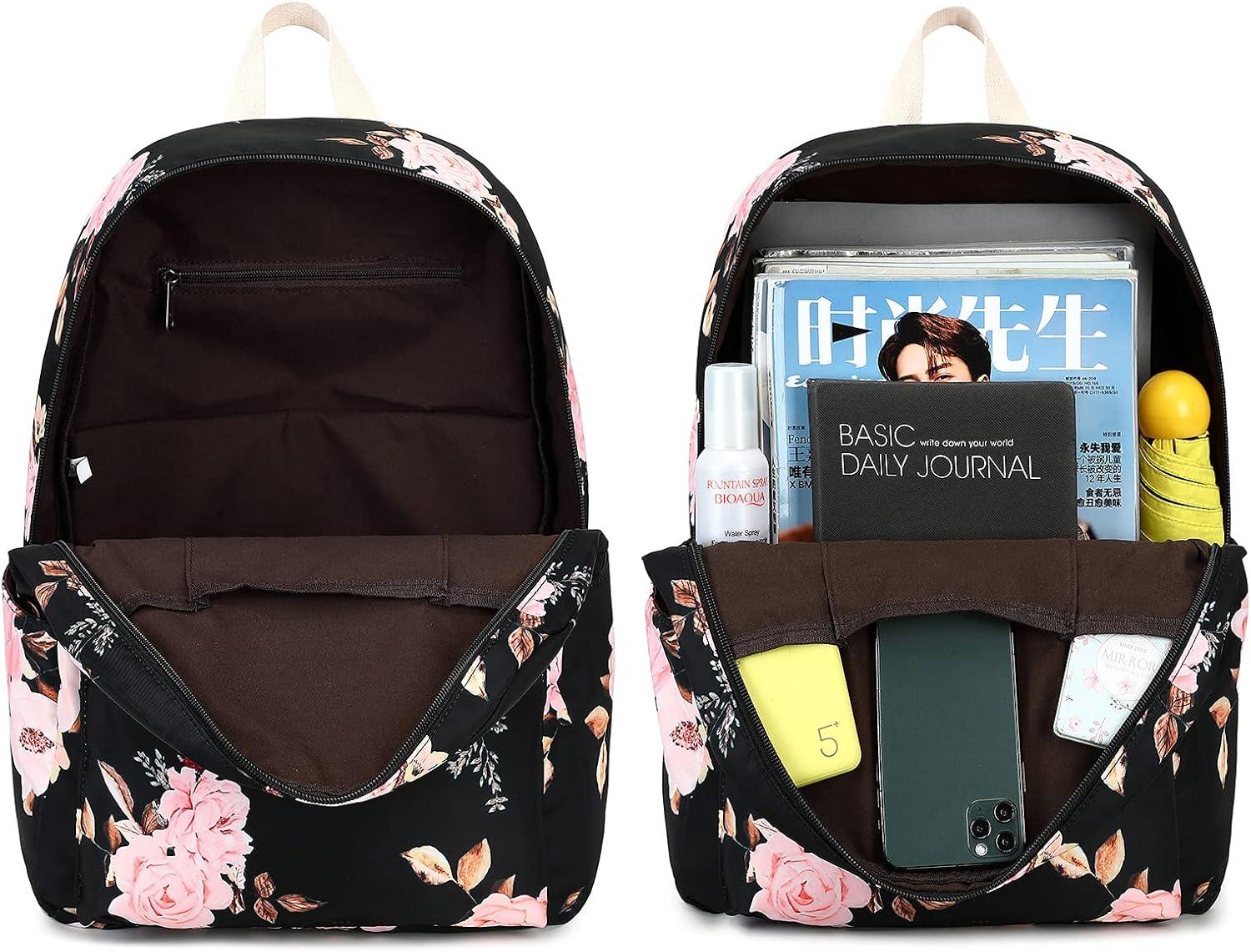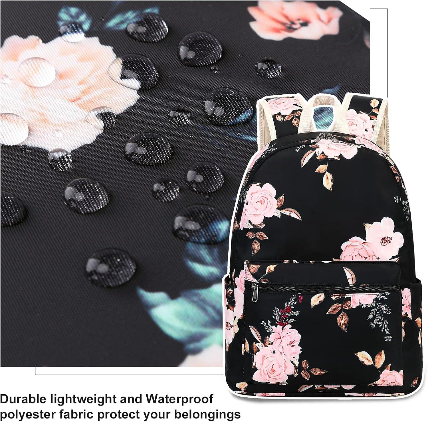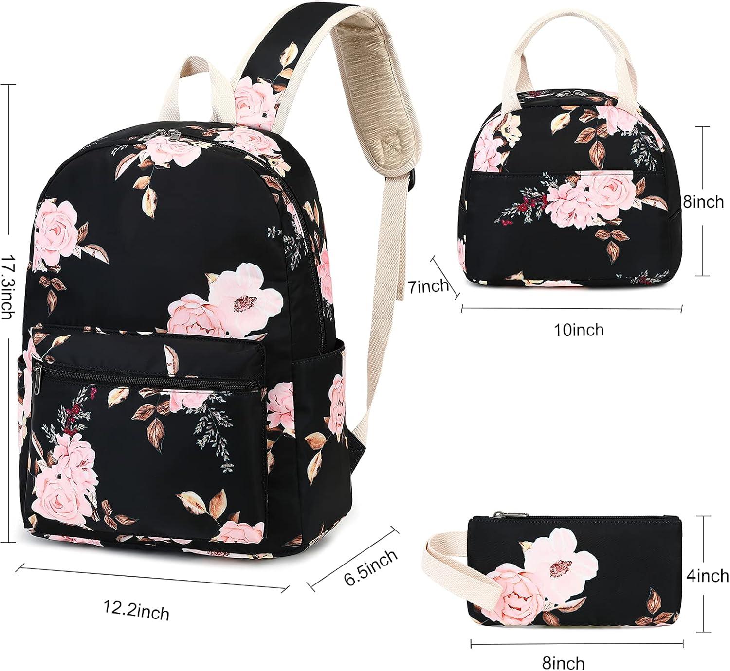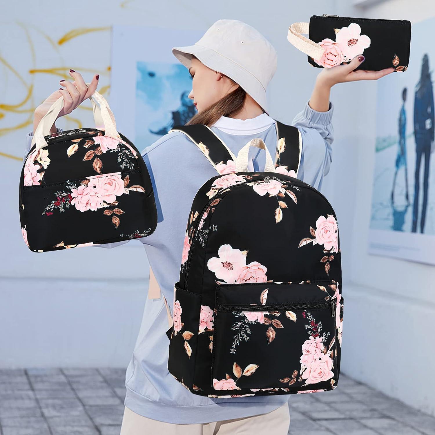 Bluboon Teens Backpack Set Girls School Backpack Lunch Box Pencil Bags Student Bookbags 3 in 1(Pink Rose Black)