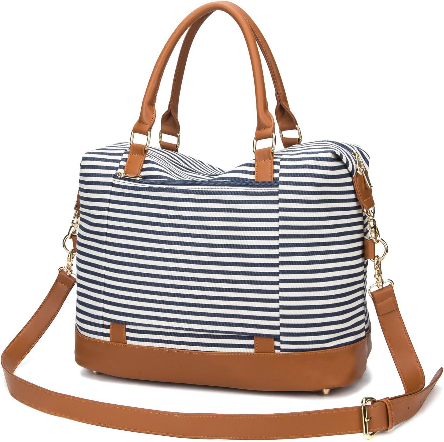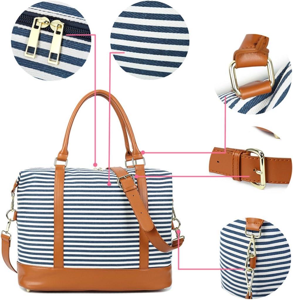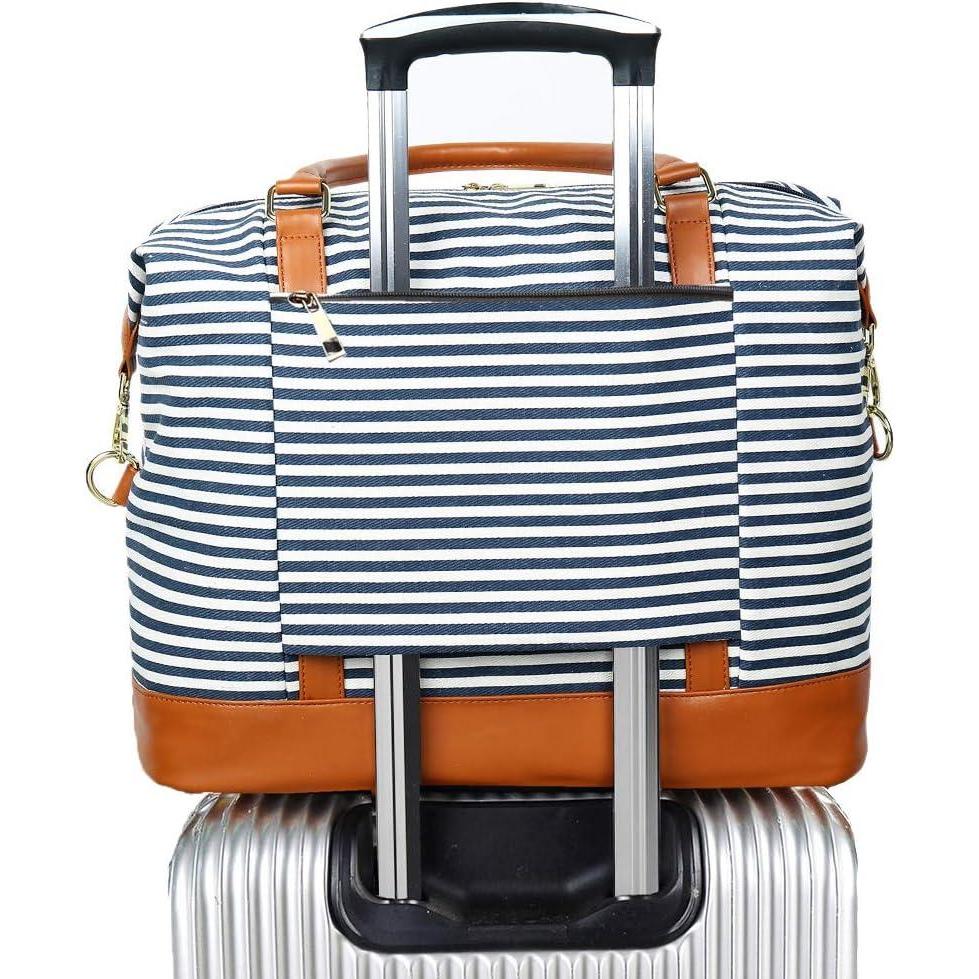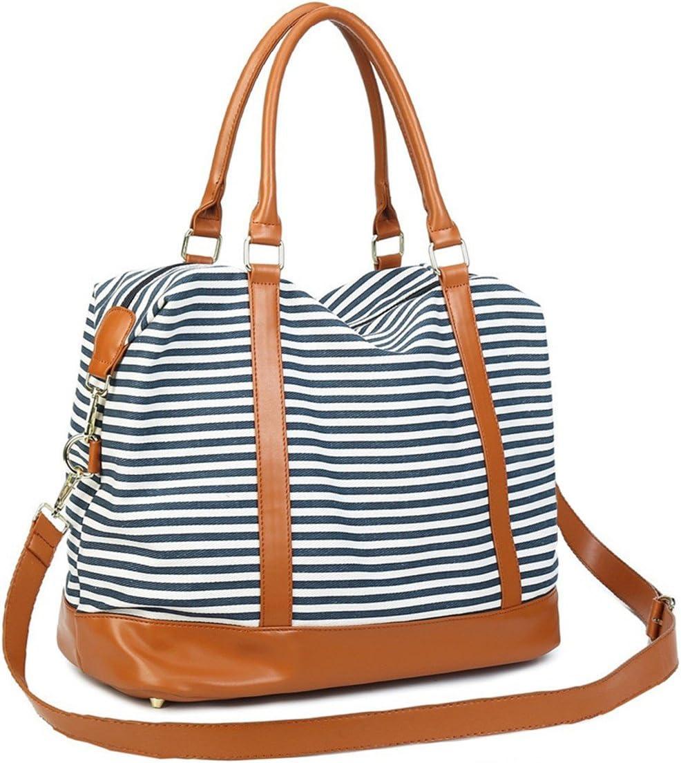 Bluboon Travel Tote Bags with Zipper Ladies Canvas Bag Weekender Overnight Bag for Women Carry on Duffel Bag Trolley Sleeve(Blue Strip 1)