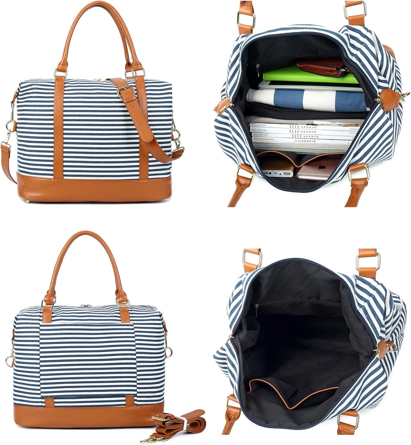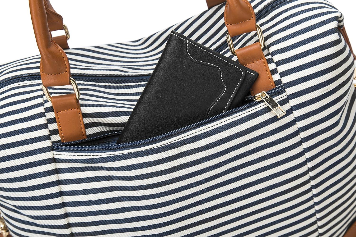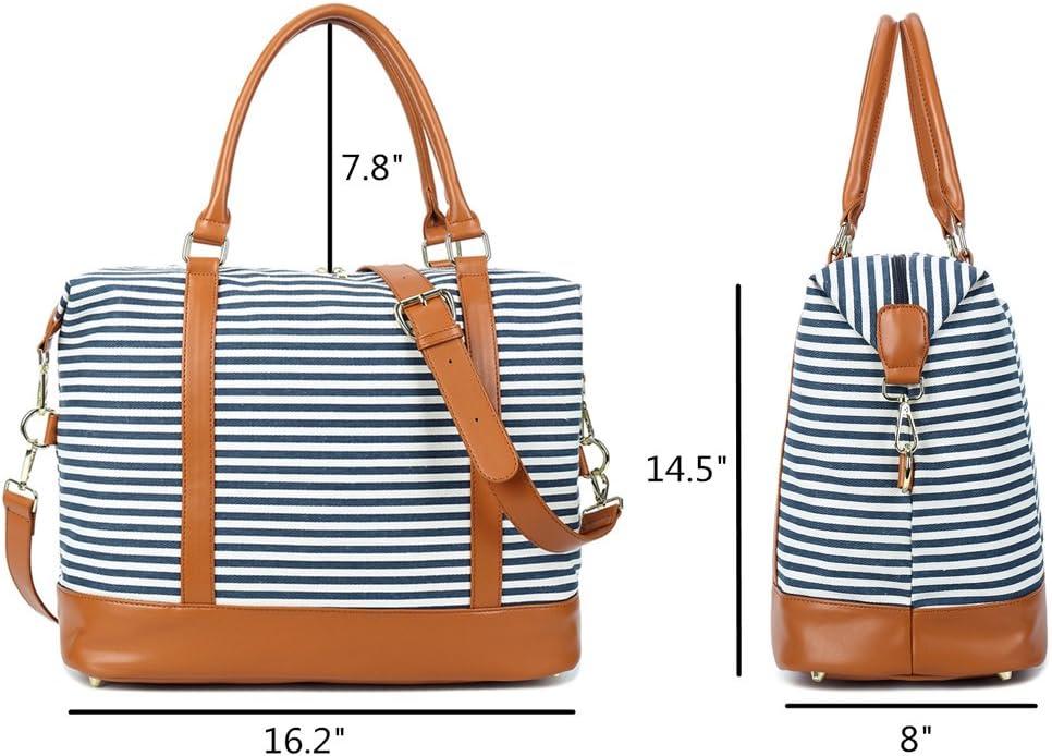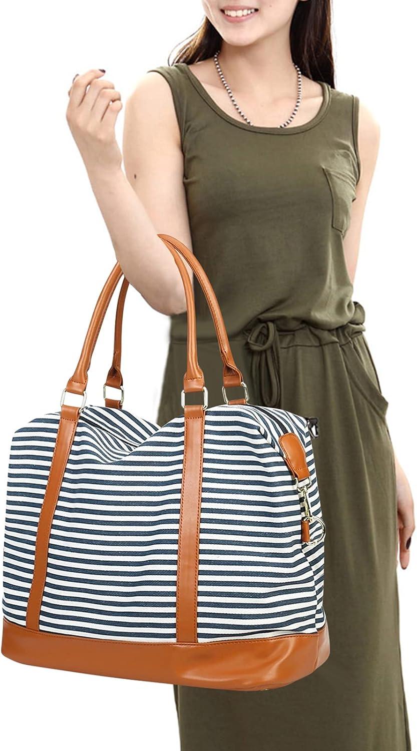 Bluboon Travel Tote Bags with Zipper Ladies Canvas Bag Weekender Overnight Bag for Women Carry on Duffel Bag Trolley Sleeve(Blue Strip 1)