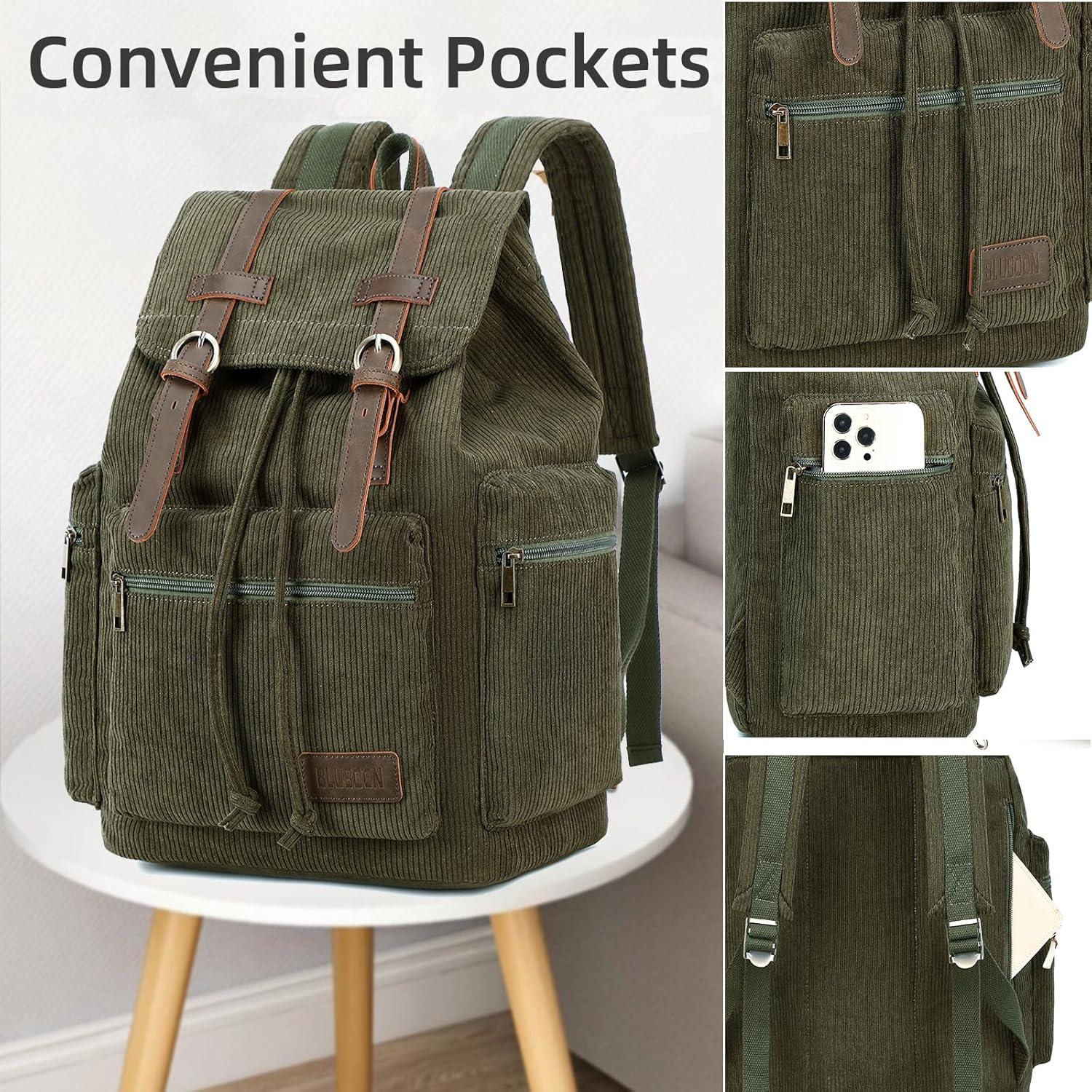 imageBluboon Vintage Backpack Leather Trim Casual Bookbag Men Women Laptop Travel RucksackGreen