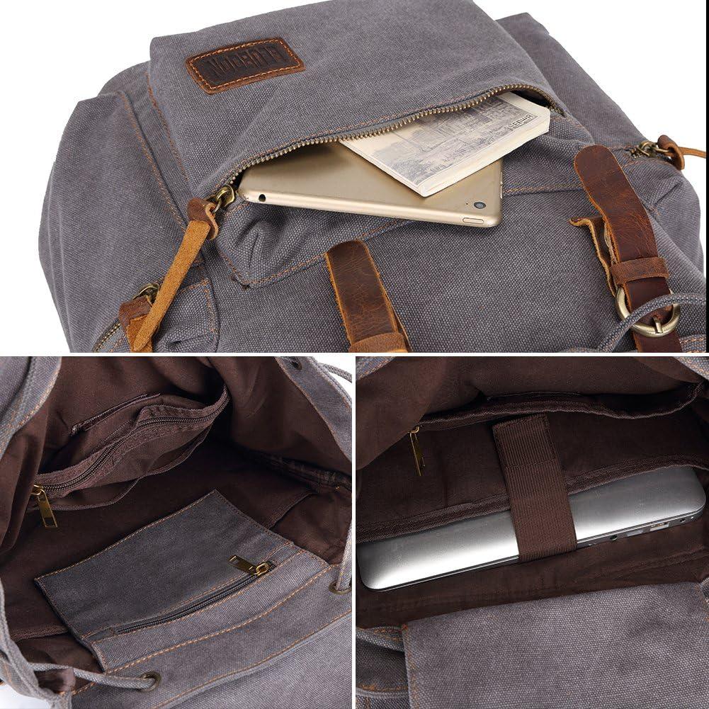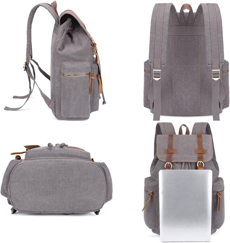 Bluboon Vintage Backpack Leather Trim Casual Bookbag Men Women Laptop Travel Rucksack(Grey)