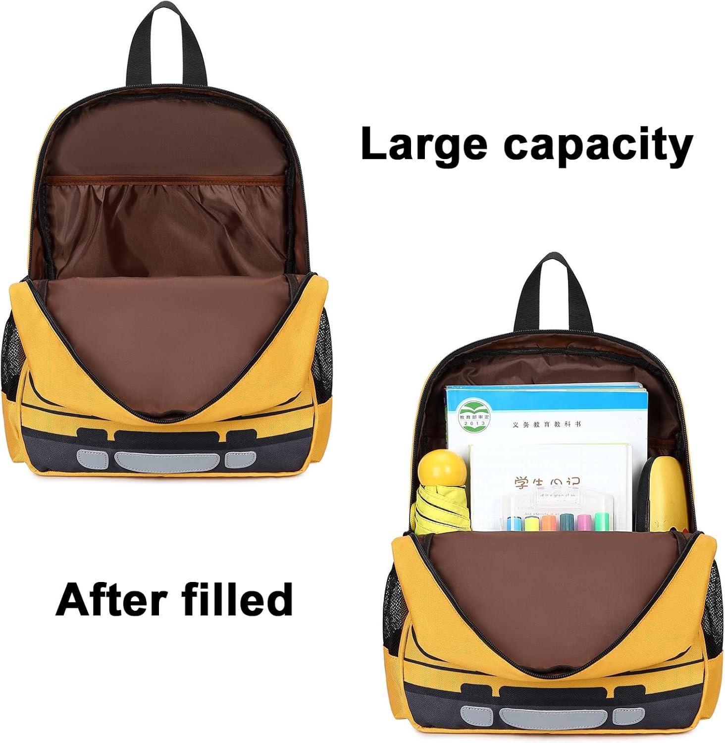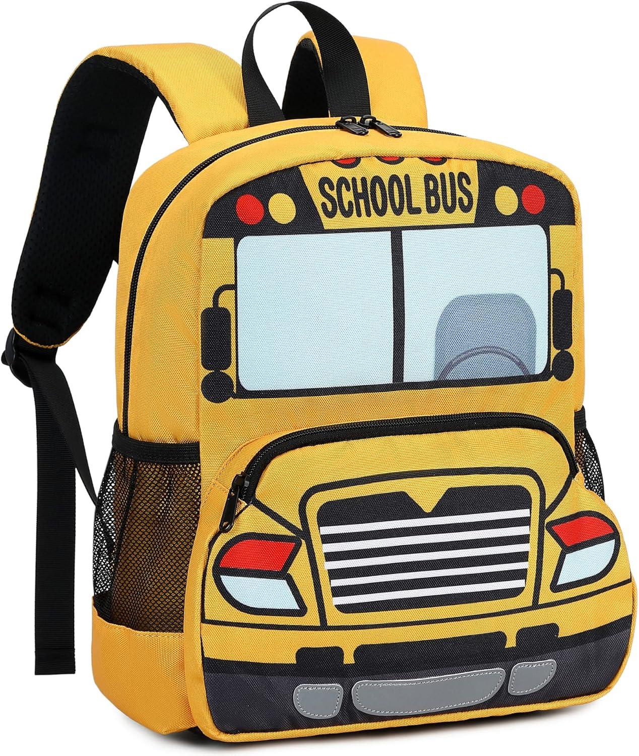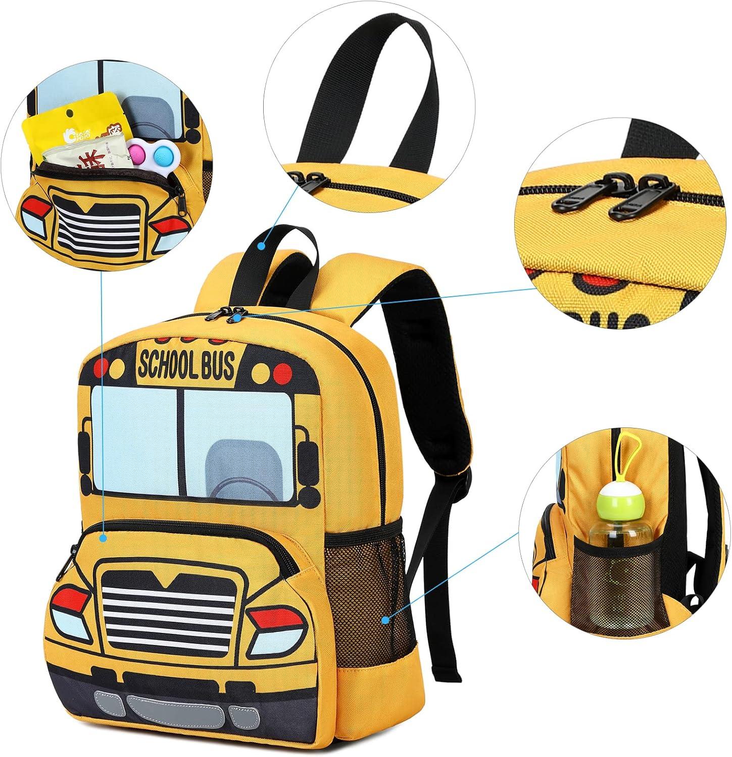 Kids Backpack for Boys Girls Preschool Bookbags 3D Cartoon Daycare Toddler Bags Medium Yellow(Yellow Bus)