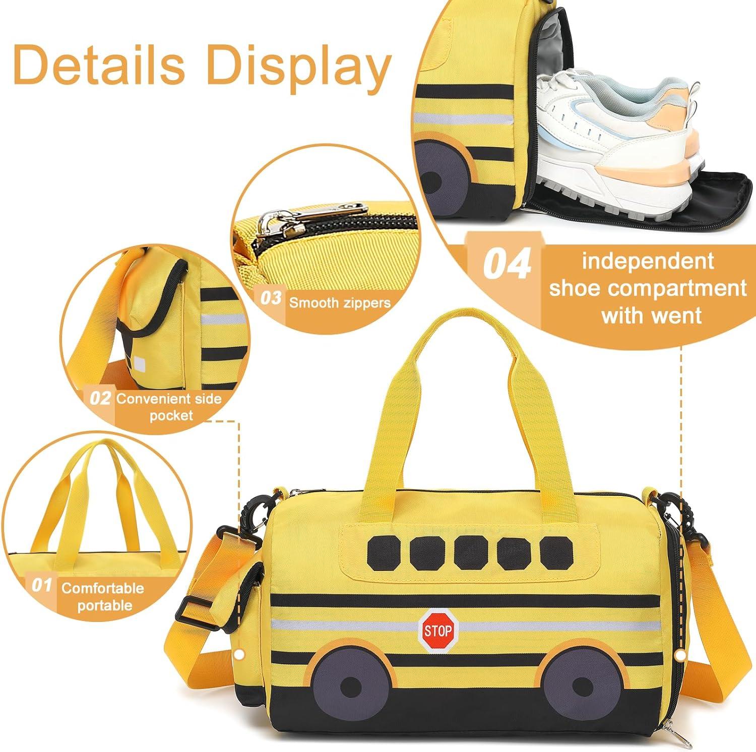 Get your hands on our newest Kids Overnight Duffle Luminous Sport Gym Gag with Shoe Compartment & Wet Pocket Small Sleepover bag Carry on Weekender Travel Tote for Kids Boys Girls(School Bus Yellow) and enjoy a limited-time discount offer.