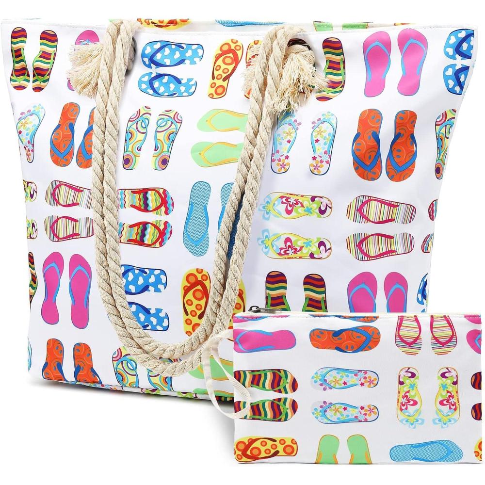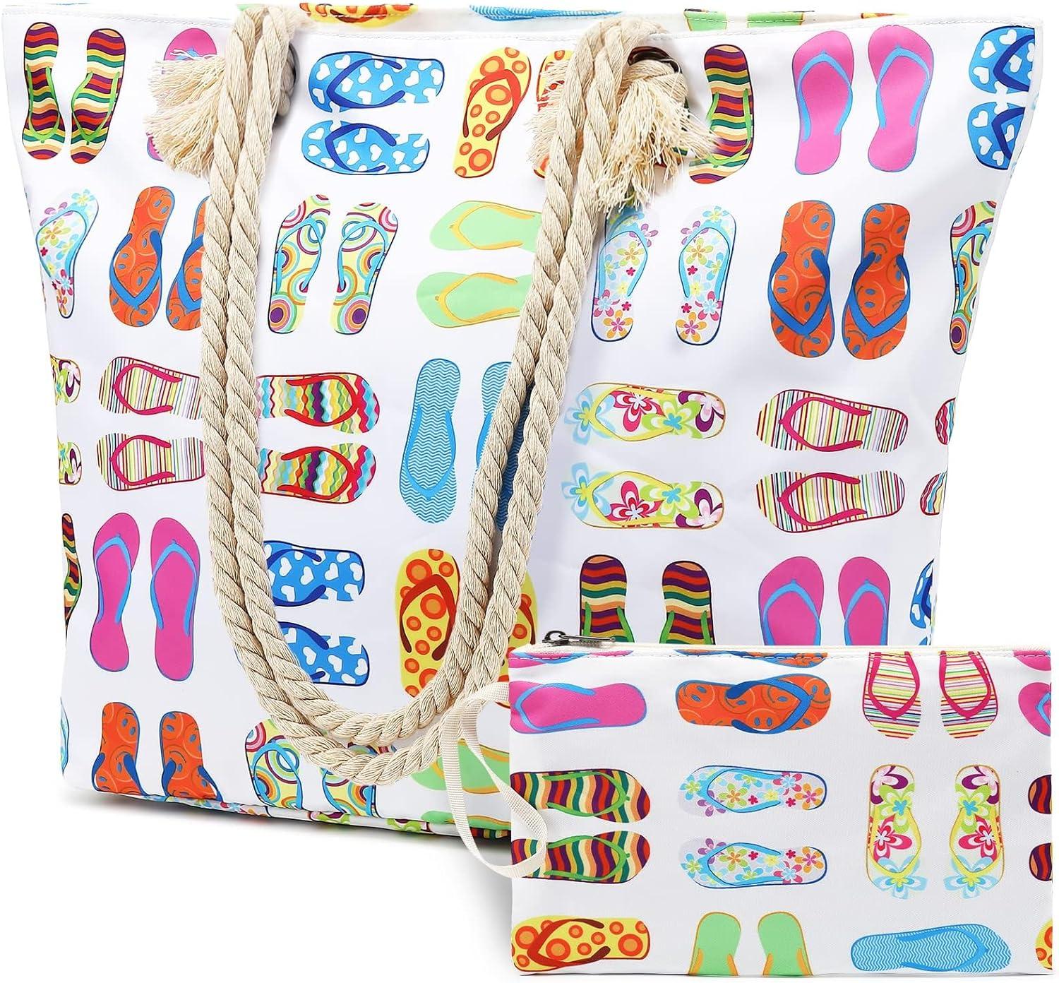 Large Beach Tote Bag Swim Bag Pool Bags with Zipper Shoulder Bag for Gym Beach Travel Daily Bags with Small Purse