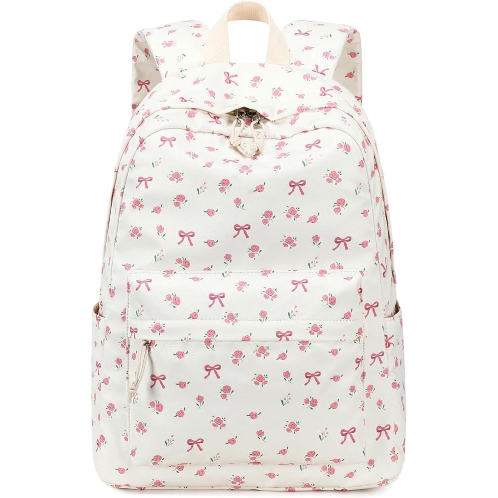 School Backpack for Teen Girls Women Laptop Backpack College Bookbags Middle School Travel Work Commuter Back Pack(Pink)(Beige Bow Tie)