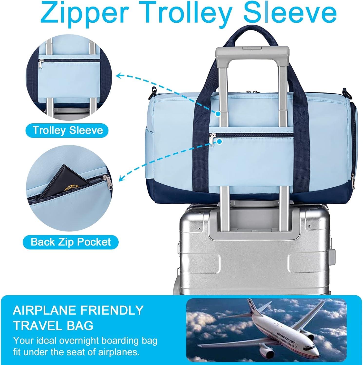 Back side with rolling sleeve allows you to slide it over rolling suitcase, and the zippered pocket can hold earphones, mobile phones, charging cables, etc perfect used as a weekend travel bag taking with all your travel essentials.