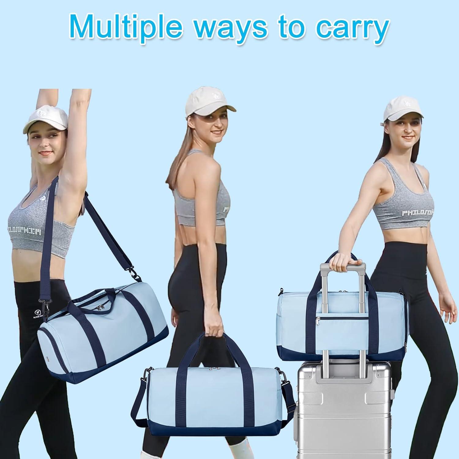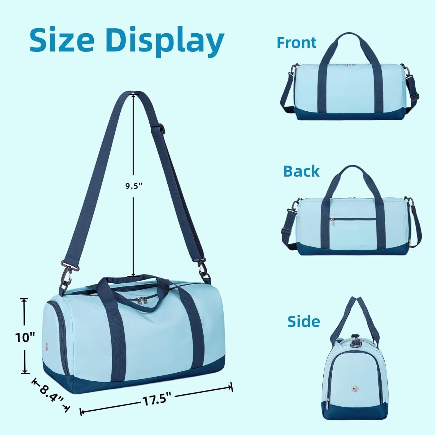 Small duffle bag Size:18.1 L x 8.7 W x 9.1 H Inch, Capacity 23L, ideal carry-on size for airplane luggage or overnight weekender trips. You can carry it as a small travel bag, overnight duffle, weekender tote for shortime trips.